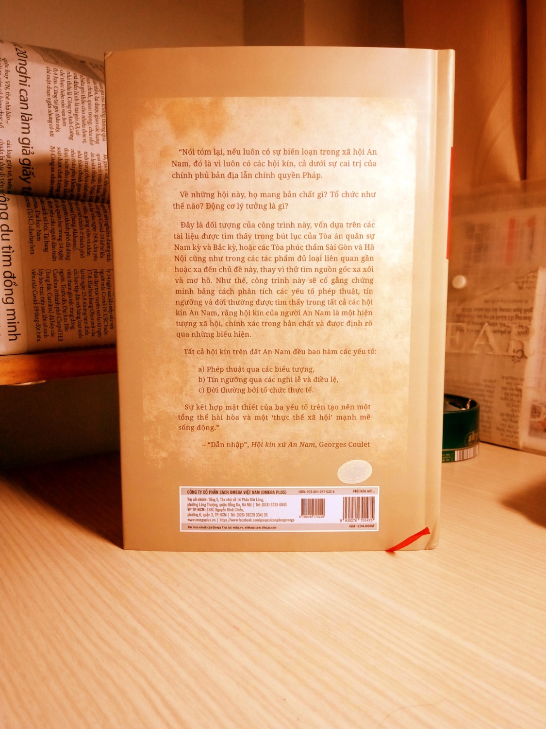 Hội Kín Xứ An Nam (Bìa Cứng) Cuốn sách này nghiên cứu về hội kín ở xứ An Nam, khởi từ sự bất ngờ và ngỡ ngàng của người Pháp về chuỗi sự kiện mưu loạn bạo động diễn ra ở khắp 3 kỳ vương quốc An Nam kéo dài từ cuối thế kỷ 19 đến trước năm 1930; đặc biệt là sự kiện 1913 ở Chợ Lớn (Phan Xích Long và các huynh đệ) và vụ Khám Lớn Sài Gòn năm 1916. Georges Coulet đã không hiểu làm thế nào mà tại cùng một thời điểm, ở khắp nơi trên toàn cõi Nam kỳ lại đồng loạt bùng nổ khởi nghĩa. Đào sâu nghiên cứu, tác giả Coulet nhận ra đây không thể là ngẫu nhiên, là sự bột phát của đám đông quần chúng mà phải có sự sắp xếp và tổ chức tinh vi. Từ đây mà ông tìm kiếm để bóc tách hòng tìm hiểu về hội kín. Bắt đầu từ tìm hiểu văn bản luật qua các bộ luật xưa cũ phong kiến, ông nhận ra ngay cả các triều đình phong kiến cũng “đụng độ” các hội kín: “Vài thế kỷ sau, tất cả các văn bản pháp lý này [Bộ luật Hồng Đức, Bộ luật Gia Long] đều thuận cho việc đàn áp các hội có dự tính hoặc bộc phát, luôn chịu trách nhiệm cho trộm cắp, cướp bóc, đốt nhà và thảm sát cũng như mưu loạn, dấy loạn và khởi nghĩa. Cùng với sự nghi ngại người ta xác định rằng họ có những thầy phù thủy và phù phép, từ quan điểm chính trị đơn nhất, họ cũng ngờ vực tất cả các học thuyết nguy hại có thể ảnh hưởng đến tâm hồn quần chúng. Sự cẩn trọng tỉ mỉ được các nhà lập pháp dựng lên để chống lại các hội kín chứng tỏ rằng những hội như vậy luôn tồn tại ở An Nam []” Và tất nhiên, bộ máy cái trị của người Pháp tất yếu phải đụng độ với các hội kín xứ An Nam. Và qua quá trình nghiên cứu này, tác giả Coulet đã tìm hiểu được không ít điều về hội kín xứ An Nam. Đây cũng là một cuốn nằm trong loạt đề tài sách nghiên cứu của nhiều học giả Pháp và châu u về hội kín Á Đông (Thiên Địa Hội Trung Hoa, Nghĩa Hòa Đoàn…) Cuốn sách này cũng được các nhà nghiên cứu khác tham khảo rất nhiều để làm tư liệu cho các sách viết về văn hóa, tâm lý, tập tục Việt Nam. Đây cũng không phải là bản dịch đầu tiên xuất hiện ở Việt Nam, nhưng có thể xem là lần đầu tiên “Hội kín xứ An Nam” được xuất hiện một cách chính thức trong làng xuất bản Việt Nam. Trong quá trình thực hiện, chúng tôi đã cố gắng tra cứu cho ra tên đúng của gần 800 nhân vật, địa danh vốn được viết theo kiểu cũ trong bản tiếng Pháp. Cuốn sách dành cho những ai thấy tò mò về “hội kín”, “phù thủy”, “nhà sư, chùa chiền và hội kín”; những nhà nghiên cứu về bối cảnh xã hội Việt Nam thời xưa: Việt Nam Quang Phục Hội, Hội Duy Tân…, cùng loạt nhân vật lịch sử luôn thu hút: Phan Bội Châu, Cường Để, Nguyễn Thần Hiến, Gilbert Chiếu Trần Chánh Chiếu, Đề Thám, Phan Xích Long… Hay những ai cần tài liệu tham khảo về hoạt động khởi nghĩa, bạo động của giai đoạn trước năm 1930 và bối cảnh lịch sử của một giai đoạn sôi sục các phong trào chống Pháp ở cả 3 xứ Bắc, Trung và Nam kỳ đều cần tham khảo cuốn sách này. Ảnh trên bìa sách là minh họa về thầy phù thủy, được mô tả ở cuối Phần I, Chương I, nội dung giới thiệu về vai trò và chức năng của thầy phù thủy/thầy pháp, phép thuật và tôn giáo trong hội kín. +TRÍCH ĐOẠN HAY: “Nói tóm lại, nếu luôn có sự biến loạn trong xã hội An Nam, đó là vì luôn có các hội kín, cả dưới sự cai trị của chính phủ bản địa lẫn chính quyền Pháp. Về những hội này, họ mang bản chất là gì? Tổ chức như thế nào? Động cơ lý tưởng là gì? Đây là đối tượng của công trình này, vốn dựa trên các tài liệu được tìm thấy trong bút lục của Tòa án quân sự Nam kỳ và Bắc kỳ, hoặc các Tòa phúc thẩm Sài Gòn và Hà Nội (xem “Phụ lục”, “Nguồn”) cũng như trong các tác phẩm đủ loại liên quan gần hoặc xa đến chủ đề này (xem Thư mục tham khảo), thay vì thử tìm nguồn gốc xa xôi và mơ hồ. Như thế, công trình này sẽ cố gắng chứng minh bằng cách phân tích các yếu tố phép thuật, tín ngưỡng và đời thường được tìm thấy trong tất cả các hội kín An Nam, rằng hội kín của người An Nam là một hiện tượng xã hội, chính xác trong bản chất và được định rõ qua những biểu hiện. Tất cả hội kín trên đất An Nam đều bao hàm yếu tố: Phép thuật qua các biểu tượng, Tín ngưỡng qua các nghi lễ và điều lệ, Đời thường bởi tổ chức thực tế. Sự kết hợp mật thiết của ba yếu tố trên tạo nên một tổng thể hài hòa và một ‘thực thể xã hội’ mạnh mẽ sống động.” – “Dẫn nhập”, Hội kín xứ An Nam, Georges Coulet