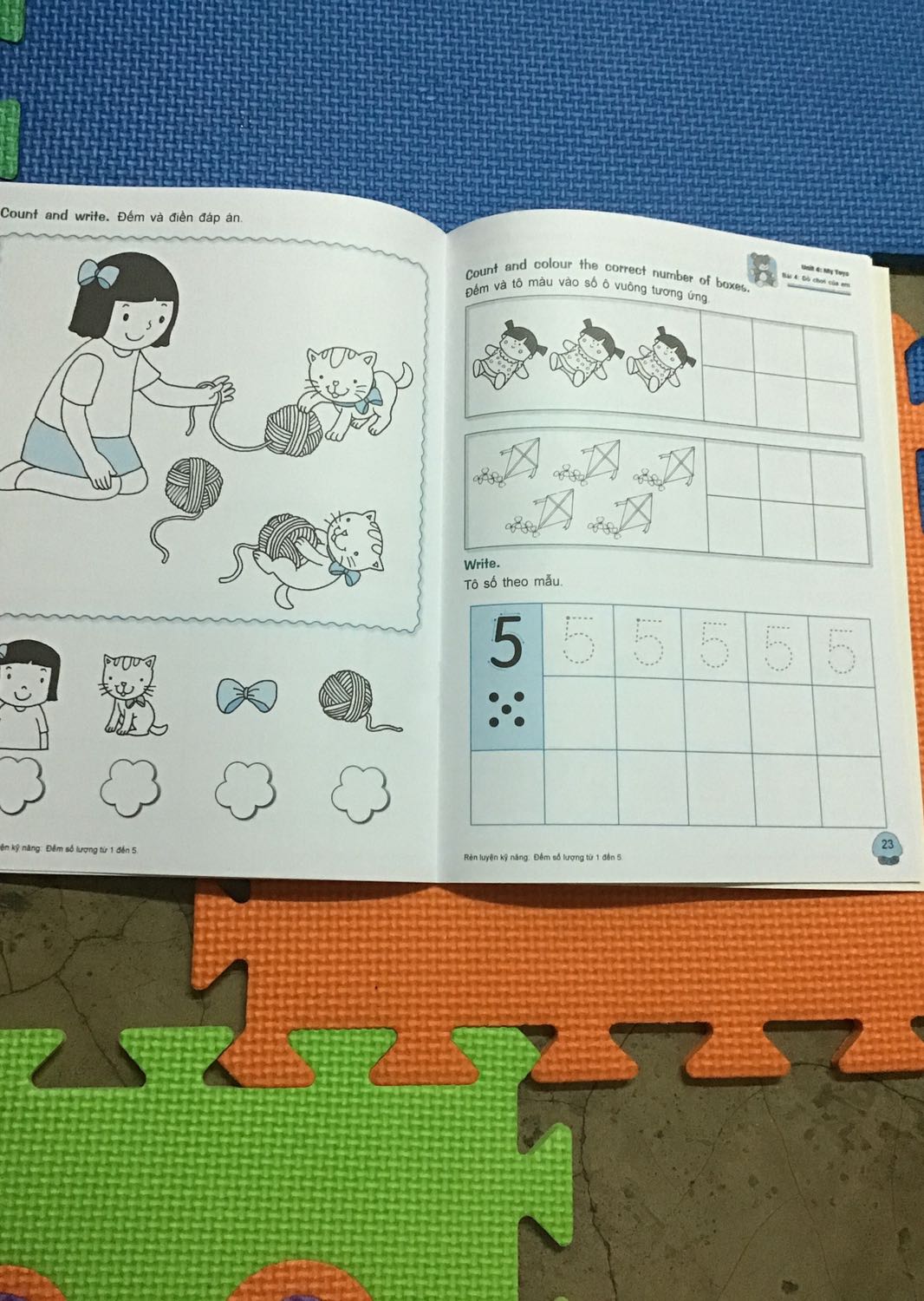 Hooray Math – Để Con Không Còn Sợ Toán (Activity Book 1) Hooray Math – Để con không còn sợ Toán là bộ sách được thiết kế theo tiêu chuẩn “Giáo dục Tiền tiểu học Quốc Gia” (National Preschool Curriculum) của Malaysia. Bộ sách bao gồm 8 cuốn, với 2 chủ đề: Book & Acitivity Book. Nội dung mỗi cuốn sách được sắp xếp một cách cụ thể và khoa học, chú trọng việc rèn luyện các kĩ năng Toán học thông qua các hoạt động và tương tác với sự vật, sự việc diễn ra trong cuộc sống thường ngày, giúp việc học toán của bé trở nên thú vị và không nhàm chán. Đầu tiên, các bé sẽ bắt đầu học các con số với “Book” sau đó thực hành với “Activity Book”tương ứng, cứ như vậy lần lượt theo từng cặp từ tập 1 đến tập 4. Cùng với hình vẽ minh họa sinh động, những hướng dẫn đơn giản nhằm kích thích tư duy, sáng tạo … bộ sách không chỉ xây dựng cho bé nền tảng toán học tốt mà con đem đến những trải nghiệm học tập vô cùng thú vị!