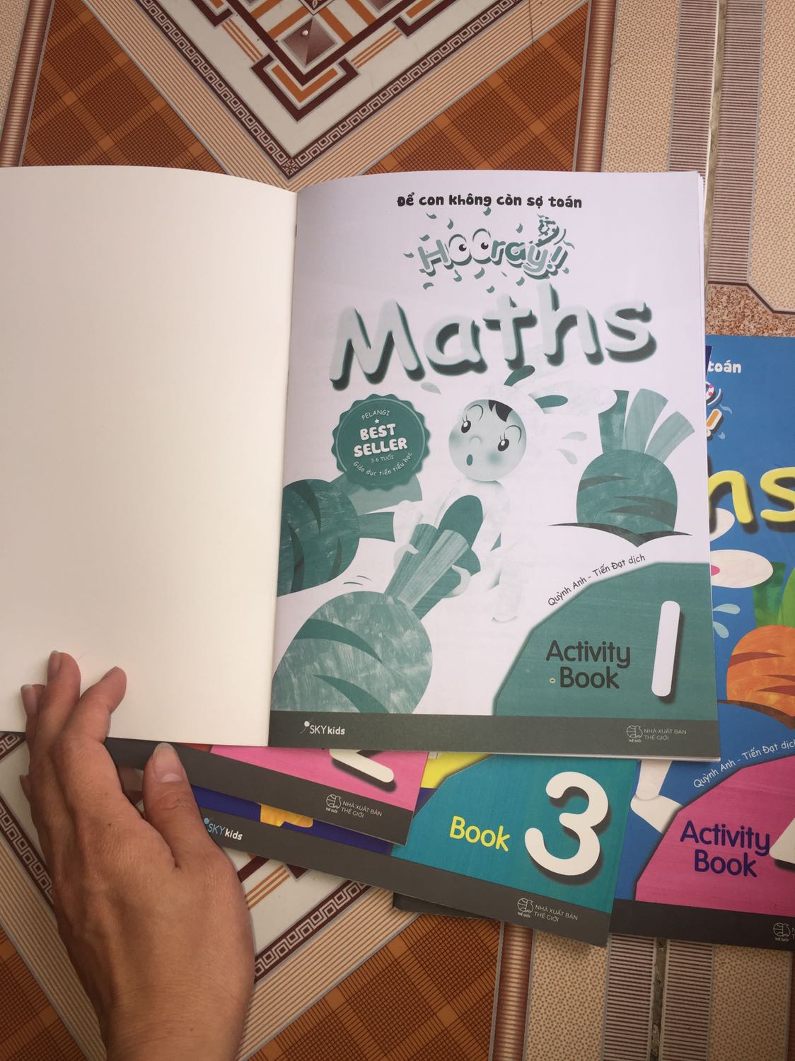 Hooray Math – Để Con Không Còn Sợ Toán (Book 3) Hooray Math – Để con không còn sợ Toán là bộ sách được thiết kế theo tiêu chuẩn “Giáo dục Tiền tiểu học Quốc Gia” (National Preschool Curriculum) của Malaysia. Bộ sách bao gồm 8 cuốn, với 2 chủ đề: Book & Acitivity Book. Nội dung mỗi cuốn sách được sắp xếp một cách cụ thể và khoa học, chú trọng việc rèn luyện các kĩ năng Toán học thông qua các hoạt động và tương tác với sự vật, sự việc diễn ra trong cuộc sống thường ngày, giúp việc học toán của bé trở nên thú vị và không nhàm chán. Đầu tiên, các bé sẽ bắt đầu học các con số với “Book” sau đó thực hành với “Activity Book”tương ứng, cứ như vậy lần lượt theo từng cặp từ tập 1 đến tập 4. Cùng với hình vẽ minh họa sinh động, những hướng dẫn đơn giản nhằm kích thích tư duy, sáng tạo … bộ sách không chỉ xây dựng cho bé nền tảng toán học tốt mà con đem đến những trải nghiệm học tập vô cùng thú vị!