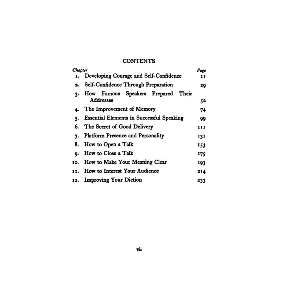 Tên Nhà Cung Cấp Công Ty Sách Báo Xunhasaba Tác giả Dale Carnegie Nhà xuất bản HarperCollins Publishers Năm xuất bản 1998 Kích thước 12 x 2 x 18 cm Số trang 256 Hình thức Bìa Mềm This book will show you how to overscome the natural fear of public speaking and even learn to enjoy it. Drawing on dale carnegie s years of experience as a business trainer, this practical book will help you to become a successful speaker. His invaluable advice includes ways to: * develop poise * gain self-confidence * improve your memory * make your meaning clear * begin and end a talk effectively * interest and charm your audience * improve your diction * win an argument without making enemies dale carnegie s methods have helped millions of people worldwide. Make sure you have the advantage, and make them work for you too. –this text refers to an out of print or unavailable edition of this title.
