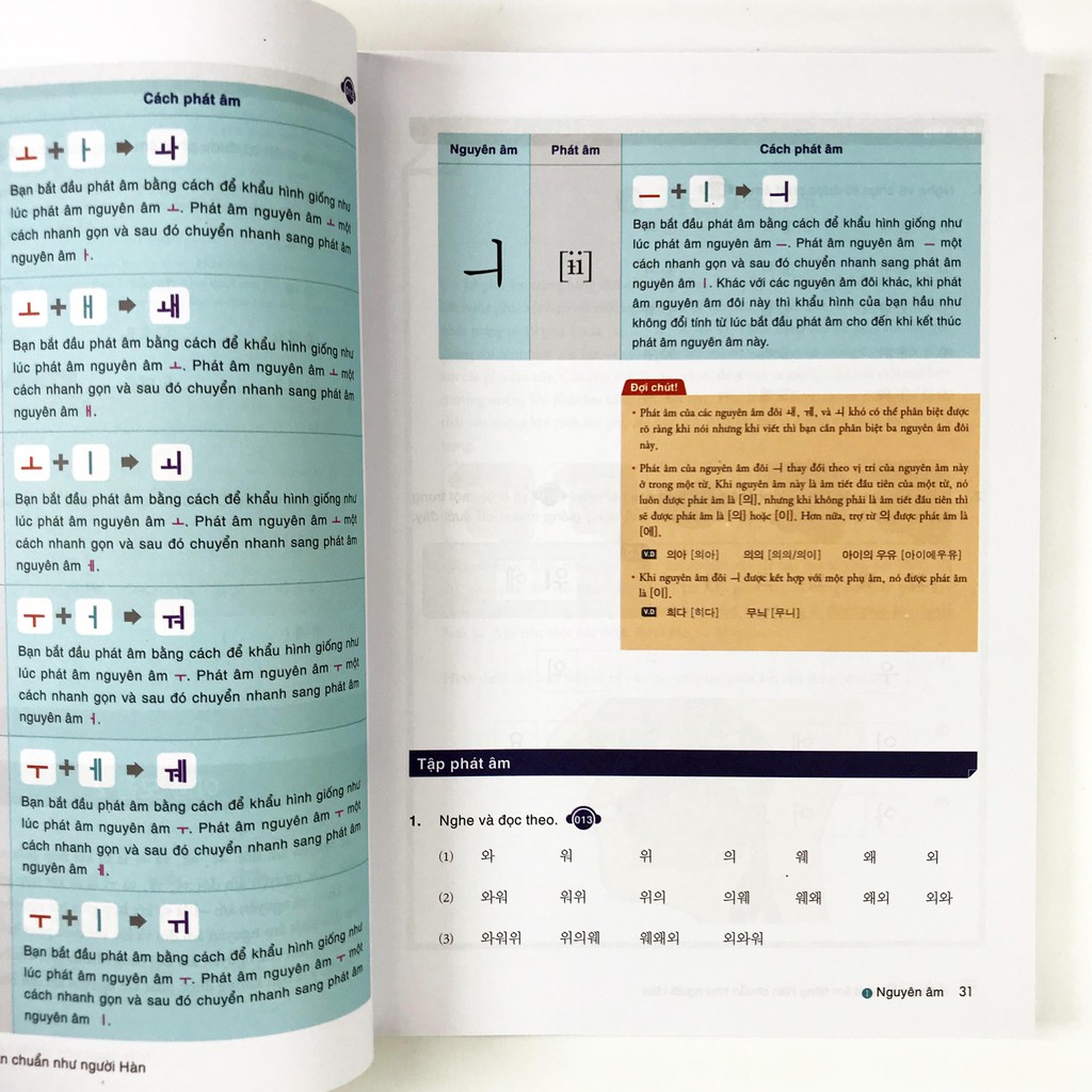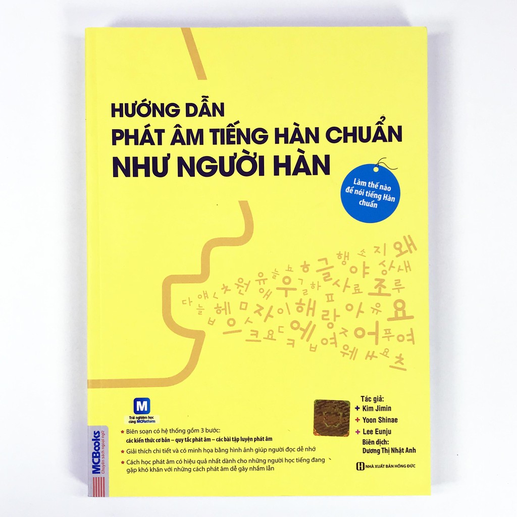 Hướng Dẫn Phát Âm Tiếng Hàn Chuẩn Như Người Hàn Quốc Khi nói một ngoại ngữ, cách phát âm có ảnh hưởng khá lớn đến việc giao tiếp. Phát âm chuẩn và hay không những tạo sự tự tin khi nói chuyện với người đối diện mà còn giúp cải thiện kỹ năng nghe hiểu, một kỹ năng cần thiết khi chuẩn bị cho các bài thi ngôn ngữ. Trong những năm gần đây, Hàn Quốc trở thành một trong những đối tác hàng đầu của Việt Nam, bên cạnh đó Hàn Quốc cũng là quốc gia có sức hút lớn về văn hóa, nghệ thuật và ẩm thực. Chính vì vậy, tiếng Hàn trở thành một trong số những ngoại ngữ được nhiều người lựa chọn để theo học. Tùy vào điều kiện về thời gian và chi phí cho việc học của mỗi cá nhân, bạn có thể học tiếng Hàn tại các lớp đào tạo tiếng Hàn hoặc tự học tiếng Hàn tại nhà. Tuy nhiên, khi bắt đầu học tiếng Hàn, dù học tại nhà hay tại các lớp học tiếng Hàn thì chúng ta cũng rất ít khi có cơ hội tiếp xúc với người Hàn Quốc. Vì thế, chúng ta cần có một cuốn sách hướng dẫn về phát âm tiếng Hàn để tham khảo khi thắc mắc muốn biết cách đọc tiếng Hàn một cách chính xác như thế nào, hay sự thay đổi âm điệu và cách phát âm cần phải chú ý điều gì và tại sao một từ lại được phát âm khác với cách từ đó được viết. Hiện nay, trên thị trường tuy là đã có nhiều sách về ngữ pháp, từ vựng, sách giúp chuẩn bị cho các kì thi, nhưng lại có ít sách về phát âm vừa có cả lý thuyết vừa có cả phần quy tắc phát âm và phần bài tập cho người học luyện phát âm theo. Với mục đích trên, cuốn sách “Hướng dẫn phát âm tiếng Hàn chuẩn như người Hàn” được viết ra để giúp người học có thể tự học các quy tắc phát âm tiếng Hàn. Cuốn sách cũng được viết ra để giúp các giáo viên dạy tiếng Hàn, những người hiểu tầm quan trọng của việc phát âm tham khảo khi họ gặp khó khăn trong việc giảng dạy vì sách giáo khoa chính không đề cập đến các quy tắc một cách đầy đủ. Cuốn sách này gồm 3 phần: Kiến thức cơ bản về phát âm tiếng Hàn Các quy tắc phát âm Bài tập luyện đọc Trong đó, Phần “Kiến thức cơ bản về phát âm tiếng Hàn” giới thiệu về nguyên âm, phụ âm, phụ âm cuối patchim, cách đọc nối âm để người học có thể nắm được bảng chữ cái tiếng Hàn và cách phát âm các chữ cái. Phần “Các quy tắc phát âm” giải thích một cách dễ hiểu các quy tắc phát âm khi từ tiếng Hàn không phát âm giống với cách viết. Thông qua phần hội thoại và bài tập, người học có thể học được cách phát âm tiếng Hàn chính xác. Phần chuẩn bị bài đọc, nội dung đầu tiên của phần “Bài tập luyện đọc”, sẽ giới thiệu đến người học về sự thay đổi âm điệu khi đọc một câu tiếng Hàn. Phần “Bài tập luyện đọc” gồm 10 bài được biên soạn theo phong cách hội thoại giao tiếp thường ngày và 10 bài được biên soạn theo phong cách văn viết với các chủ đề đa dạng về văn hóa và cuộc sống thường nhật giúp người học tìm được sự hứng thú về văn hóa Hàn Quốc hơn. Cũng trong phần này, người học sẽ được hướng dẫn để ôn tập lại các quy tắc phát âm đã được giới thiệu ở phần đầu sách, đồng thời được hướng dẫn luyện đọc to để cải thiện kỹ năng phát âm và nói tiếng Hàn của mình. Hi vọng rằng cuốn sách này sẽ trở thành sách hướng dẫn tốt nhất cho những người học tiếng Hàn và mong muốn phát âm tiếng Hàn với âm điệu tự nhiên, chính xác như người Hàn Quốc. Công ty phát hành MCBooks Nhà xuất bản Nhà Xuất Bản Hồng Đức Tác giả Kim Jimin, Yoon Shinae, Lee Eunju Kích thước 19 x 26 cm Loại bìa Bìa mềm Số trang 284 Năm xuất bản 2019 Trân trọng hợp tác và phục vụ