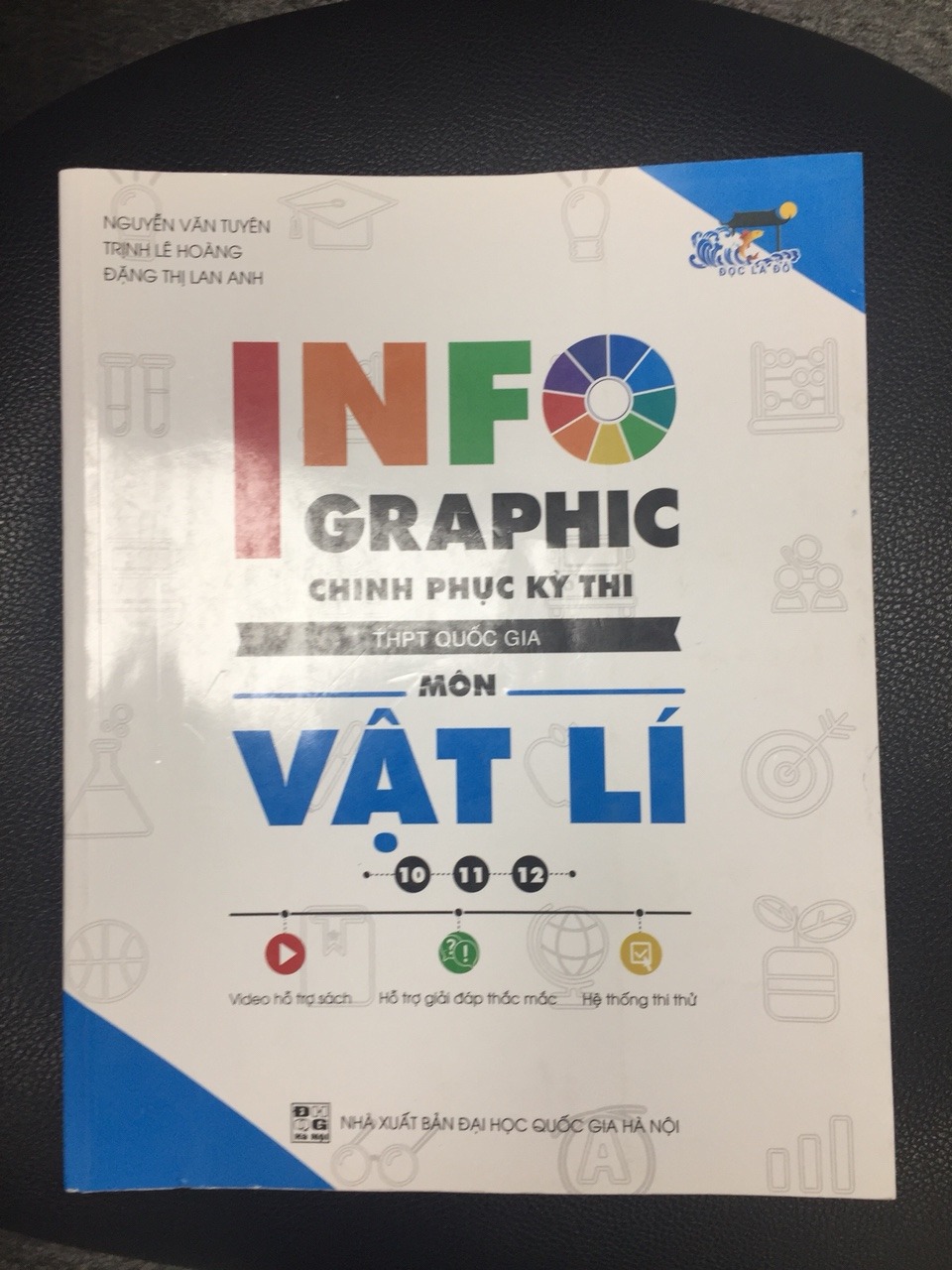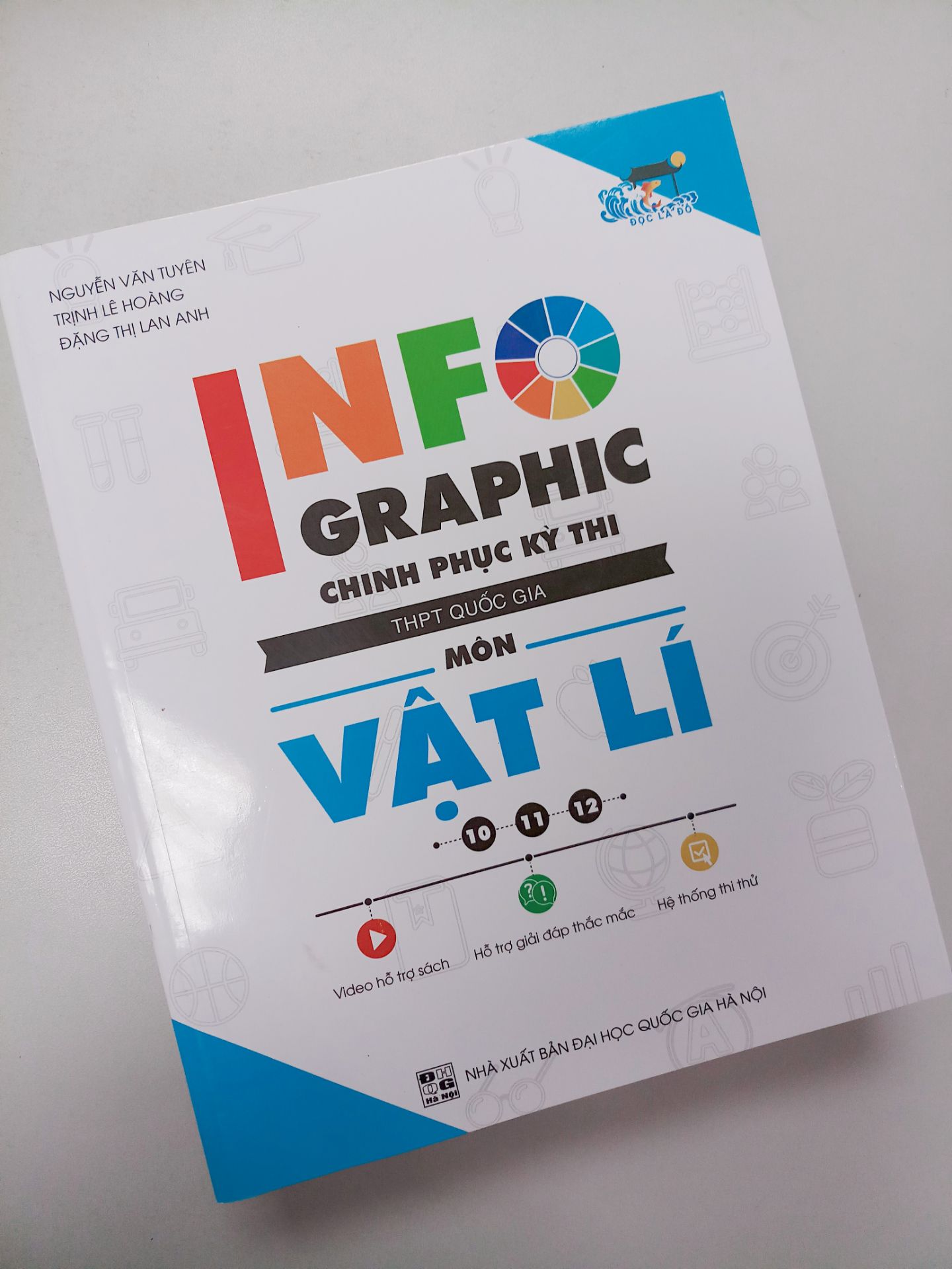 Infographic Chinh Phục Kỳ Thi THPT Quốc Gia Môn Vật Lí là cuốn sách luyện thi THPT Quốc gia đầu tiên trên thị trường (là 1 trong 5 cuốn của bộ INFOGRAPHIC chinh phục kỳ thi THPT Quốc Gia – gồm Toán, Lý, Hóa, Sinh, Sử) trình bày kiến thức bằng đồ họa trực quan, biểu diễn kiến thức bằng hình ảnh và dữ liệu rõ ràng, dễ hiểu dễ nhớ INFOGRAPHIC chinh phục kỳ thi THPT Quốc gia môn Vật lí đang được hàng nghìn teen 2K1 trên cả nước tin dùng. Mặc dù sách còn đang trong giai đoạn in ấn, số lượng học sinh đặt trước sách đã lên tới con số 2500. Lượt xem trước nội dung cuốn Vật lí cán mốc 13.600 lượt chỉ trong 1 tuần. Điều này đã chứng tỏ được sức hút vô cùng mạnh mẽ của INFOGRAPHIC chinh phục kỳ thi THPT Quốc gia môn Vật lí. Cuốn sách thuộc bộ INFOGRAPHIC chinh phục kỳ thi THPT Quốc gia do NXB Đại học Quốc gia Hà Nội và đơn vị CCBook cùng đội ngũ giáo viên chuyên môn giỏi biên soạn. Nội dung sách bao phủ toàn bộ kiến thức trọng tâm lớp 10, 11, 12 thường xuyên xuất hiện trong đề thi THPT Quốc gia. Trong đó kiến thức lớp 12 là chủ đạo và được nhấn mạnh. Bố cục cuốn sách gồm 6 phần chính: Phần I: Cơ học – Bao gồm 3 chủ đề là Cơ học 10; Dao động điều hòa và Sóng cơ học. Nội dung các bài học được trình bày logic thể hiện sự liên hệ mật thiết giữa kiến thức các năm. Phần II: Điện học- Có tất cả 3 chủ đề trọng tâm chưa bao giờ vắng mặt trong đề thi THPT Quốc gia đó là Điện học 11; Dòng điện xoay chiều; Dao động và sóng điện từ. Phần III: Quang Học. Chuyên đề này bao gồm 2 phần Quang học 11 và Tán sắc ánh sáng- Giao thoa ánh sáng. Phần IV: Vật lí hiện đại. Trong phần kiến thức này, sách trình bày lần lượt các chủ đề Lượng tử ánh sáng; Vật lí hạt nhân. Phần V: Nhiệt học. Có 3 chủ đền xuyên suốt là Chất khí; Các nguyên lí động lực học; Chất rắn- Chất lỏng- Sự chuyển thể. Phần VI: Sai số và đồ thị. Ở phần cuối cùng này, sách sẽ đề cập đến các dạng bài tập liên quan đến thực hành, mang tính thực tiễn theo xu hướng ra đề của Bộ trong những năm gần đây. Ưu điểm nổi bật của sách: Điểm nổi bật và cũng là ấn tượng nhất của INFOGRAPHIC chinh phục kỳ thi THPT Quốc gia môn Vật lí chính là việc đồ họa hóa kiến thức, dùng hình ảnh và dữ liệu để thể hiện kiến thức cực ngắn gọn và dễ hiểu. Nếu như trước đây học sinh thường thấy các bài học Vật lí thật trừu tượng, khó hiểu, khó nhớ thì với cuốn sách này, các em có thể nắm được 90% nội dung ngay từ lần đọc đầu tiên. Chỉ với INFOGRAPHIC chinh phục kỳ thi THPT Quốc gia môn Vật lí, em có thể nạp lượng kiến thức khổng lồ của 3 năm thần tốc. Không chỉ nhớ mà em còn hiểu sâu, nhớ lâu được đến tận ngày thi.