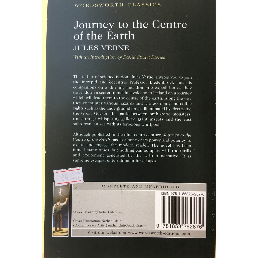 Thông tin sản phẩm : Tác giả: Jules Verne Nhà Xuất bản : Wordsworth Editions Ltd Nhà phát hành: Wordsworth Editions Ltd Năm xuất bản:1996 Ngôn ngữ : Tiếng Anh Số trang: 185 ISBN: 9781853262876 Nội dung: The father of science fiction, Jules Verne, invites you to join the intrepid and eccentric Professor Liedenbrock and his companions on a thrilling and dramatic expedition as they travel down a secret tunnel in a volcano in Iceland on a journey which will lead them to the center of the earth. Along the way, they encounter various hazards and witness many incredible sights such as the underground forest, illuminated by electricity, the Great Geyser, the battle between prehistoric monsters, the strange whispering gallery, giant insects, and the vast subterranean sea with its ferocious whirlpool. Although published in the nineteenth century, Journey to the Centre of the Earth has lost none of its power and potency to excite and engage the modern reader. The novel has been filmed many times, but nothing can compare with the thrills and excitement generated by the written narrative. It is supreme escapist entertainment for all ages Hành trình vào tâm Trái Đất (tiếng Pháp: Voyage au centre de la Terre) là một tiểu thuyết khoa học viễn tưởng của Jules Verne xuất bản vào năm 1864. Câu chuyện kể về một giáo sư người Đức tin rằng có những miệng núi lửa có con đường đi thẳng xuống trung tâm Trái Đất. Ông, đứa cháu trai Axel, và người dẫn đường Hans của họ đã trải qua những chuyến phiêu lưu thú vị, gặp gỡ những con vật thời tiền sử cùng các thảm họa tự nhiên, cuối cùng đã quay lại được mặt đất ở miền nam nước Ý. Các sinh vật sống mà họ gặp phải phù hợp với từng thời kỳ địa chất, cũng như các lớp đá dần càng cổ hơn khi họ đi xuống càng sâu, những loài vật cũng xưa hơn khi các nhân vật tiến gần đến tâm Trái Đất.
