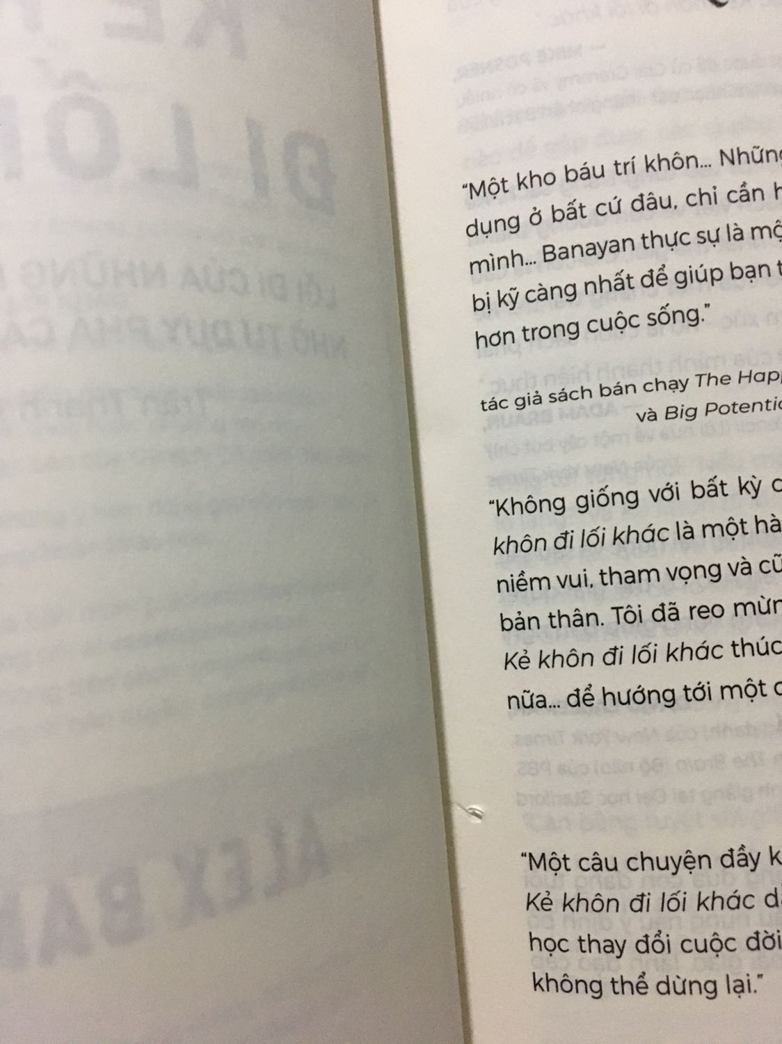 “Khi cơ hội ở ngay trước mắt, hãy bắt lấy nó.” — Alex Banayan Cánh cửa dẫn đến thành công trong sự nghiệp hay cuộc sống cũng giống như lối đi dẫn vào câu lạc bộ đêm. Chúng ta có Cánh cửa thứ nhất: cửa chính, nơi hàng dài người xếp hàng; 99% trong số đó chờ đợi và hy vọng người tiếp theo là mình. Một thiểu số khác thì đi Cánh cửa thứ hai: cửa VIP, cánh cửa dành cho các tỷ phú, người nổi tiếng và những người sinh ra trong thế giới đó. Nhưng không ai nói cho bạn biết rằng luôn có, luôn luôn có Cánh cửa thứ ba. Đó là lối vào mà bạn phải tách khỏi đám đông, chạy vào ngõ hẻm, đập cửa hàng trăm lần, cạy mở cửa sổ hay lẻn qua nhà bếp. Và đó chính là con đường mà Bill Gates, Steven Spielberg, Lady Gaga, Larry King, Tim F trở thành những người thành công như bây giờ. Tất cả họ đều lựa chọ Cánh cửa thứ ba. “Một chuyến tàu lượn đầy xúc cả Tôi đã cười và cũng đã khóc. Kẻ khôn đi lối khác khiến tôi không thể rời mắt khỏi từng trang sá Phải mất đến nhiều thập kỷ, một cuốn sách đại diện cho cả một thế hệ mới xuất hiện. Kẻ khôn đi lối khác chính là đại diện của hiện tại.” — ELIANA MURILLO Giám đốc marketing đa văn hóa của Google