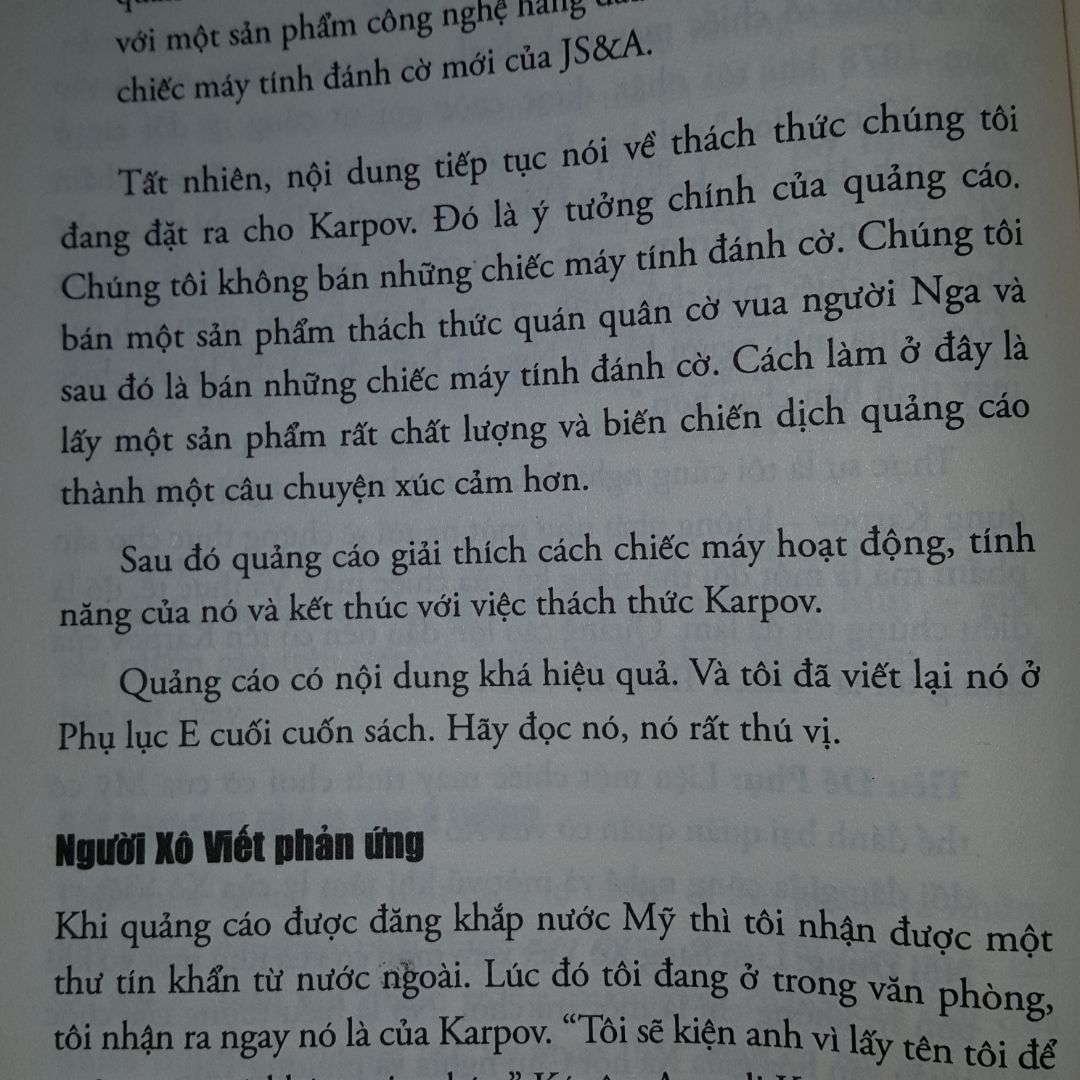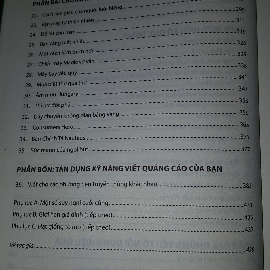 Khiêu Vũ Với Ngòi Bút Nội dung quảng cáo là trái tim và linh hồn của người quảng cáo, cho dù là quảng cáo in ấn, trên truyền hình, radio hay bất kỳ phương tiện truyền thông nào khác. Trong Khiêu vũ với ngòi bút, copywriter huyền thoại, phù thủy quảng cáo của nước Mỹ, Joseph Sugarman, cung cấp cho độc giả những hướng dẫn cơ bản và những lời khuyên lão luyện để viết nên một quảng cáo hấp dẫn, khiến khách hàng đánh đổi những đồng tiền khó nhọc mới kiếm được của mình để mua sản phẩm của bạn. Sugarman từng bước từng bước hướng dẫn chúng ta hoàn thành toàn bộ quá trình viết quảng cáo – từ khâu chuẩn bị nghiên cứu sản phẩm và thị trường cho đến tuôn trào mọi ý tưởng xuất hiện trong đầu ra giấy rồi mài giũa cho chúng bóng bẩy, hấp dẫn. Ông cũng giải thích rõ ràng về những yếu tố sống còn làm nên một quảng cáo hấp dẫn cũng như những mẹo mực cảm xúc đủ để khiến khách hàng phải mua hàng. Cuốn sách này hàm chứa mọi công cụ, chiến thuật cần và đủ để bạn viết được những quảng cáo bán hàng hiệu quả như những quảng cáo vĩ đại đã đưa Sugarman lên đỉnh cao danh tiếng và tiền tài. Cho dù bạn mới bước chân vào ngành quảng cáo hay đã trở thành một chuyên gia, thì cuốn sách này cũng vẫn là người bạn đồng hành tối thượng nhằm giúp bạn đạt được mọi điều mình muốn trong công việc. Cùng với những hướng dẫn cụ thể, thực tế về viết quảng cáo cho nhiều hình thức truyền thông khác nhau, cuốn cẩm nang này sẽ cho bạn biết mọi điều để tiến lên phía trước trong một thế giới quảng cáo vốn luôn cạnh tranh khốc liệt.