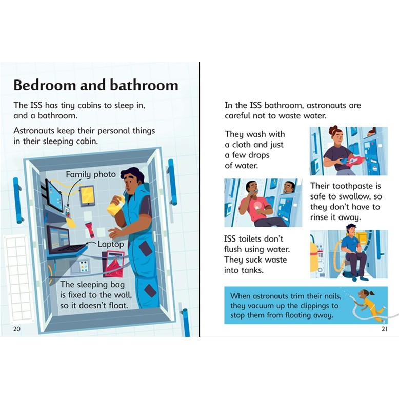 NỘI DUNG SÁCH KHOA HỌC CHO BÉ BEGINNER LIVING SPACE Sách Khoa Học cho bé Beginner Living Space là một cuốn sách độc đáo, giúp các bé tìm hiểu về các vấn đề: – Làm sao các nhà du hành có thể ở, nghiên cứu trong Vũ trụ bao la rộng lớn? – Làm sao các nhà du hành có thể đến được các Trạm không gian? – Họ sẽ sinh hoạt, ăn uống, ngủ nghỉ, làm việc như thế nào? Sách được in màu đẹp mắt, với mỗi trang có nhiều hình ảnh. Câu văn ngắn gọn, súc tích nhưng chứa đựng nhiều thông tin quý giá. Ngoài ra, sách còn có nhiều đường dẫn Internet Link để giúp các bé chủ động tìm kiếm thông tin, mở rộng kiến thức và vấn đề quan tâm Cuốn sách mở ra nhiều chân trời khoa học, giúp các bé có nền tảng cho những kiến thức chuyên sâu hơn sau này THÔNG TIN SÁCH KHOA HỌC CHO BÉ BEGINNER LIVING SPACE ĐỘ tuổi: 4+ Sách thiết kế bìa cứng, các trang in màu đẹp mắt Nhà Xuất bản Usborne ISBN: 9781474921831 Số trang: 32 Kích thước: 240 x 150mm Năm xuất bản: 2018 #Sách_cho_bé #Sách_Tiếng_Anh_cho_be #Sách_ngoại_văn_cho_bé #Sách_cho_be_3_tuổi #sách_thiếu_nhi #sách_giấy_cứng #sách_tương_tác #sách_khoa_học_cho_bé #sách_khoa_học