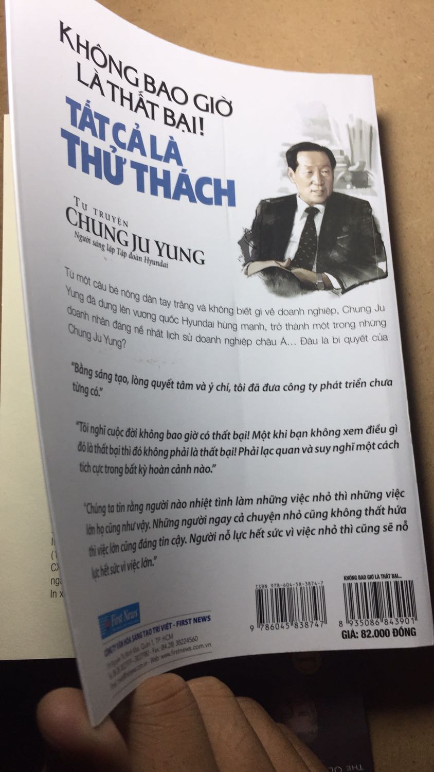 Tái bản tự truyện người sáng lập tập đoàn Hyundai: Không Bao Giờ Là Thất Bại! Tất Cả Là Thử Thách Tự truyện của cố chủ tịch tập đoàn Huyndai – Chung Ju Yung, ấn bản đạt số lượng phát hành kỷ lục, hơn 500.000 bản tại Việt Nam vừa tái xuất với diện mạo hoàn toàn mới, tinh tế và sang trọng hơn. “Không bao giờ là thất bại, tất cả là thử thách” thuật lại chi tiết cuộc đời và sự nghiệp của cố chủ tịch Chung Ju Yung qua từng giai đoạn thăng trầm. Đây là quyển sách gối đầu giường của rất nhiều thế hệ doanh nhân vì chứa đựng trong nó, không chỉ là hành trình và kinh nghiệm của người sáng lập nên một trong những thương hiệu nổi tiếng nhất thế giới mà còn có những bài học ấn tượng về quản trị, kinh doanh cũng như đạo làm người. Qua lời kể của ông, người đọc sẽ hiểu được tuổi thơ nghèo khó và khát khao làm giàu của cố chủ tịch Chung Ju Yung. Ba lần trốn chạy khỏi gia đình, khỏi đồng quê để có thể bước chân vào thương trường, ông gây dựng cơ nghiệp từ kẻ không một xu dính túi. Kinh doanh dịch vụ sửa chữa ôtô, sau đó bước vào thị trường với việc sản xuất xe hơi rồi lại mở rộng lĩnh vực sang xây dựng nhà ở, cầu đường, đóng tàu…, con đường vươn đến thành công của ông hoàn toàn không có màu hồng. Vừa có chút thành tựu thì lại có biến cố để đưa ông về mức khởi đầu. Điều quan trọng là con người ấy không bao giờ nghĩ mình thất bại. Tinh thần chiến đấu với những ngặt nghèo của số phận mà Chung Ju Yung tự trang bị cho mình không chỉ giúp ông chạm đến thành công mà còn trở thành cảm hứng cho rất nhiều thế hệ doanh nhân trẻ ở Hàn Quốc nói riêng, thế giới nói chung. Trong cuốn tự truyện của mình, ông viết: “Mọi thứ đều quân bình, vận may rủi đều đến với con người như nhau. Quan trọng nhất là phải nỗ lực, nỗ lực không ngừng và biết chớp thời cơ”. Với triết lý đó, Chung Ju Yung tin rằng thất bại hay không tùy thuộc vào định nghĩa của mỗi người. Nếu bạn định nghĩa mỗi lần vấp ngã là một lần thất bại thì đó thực sự là thất bại, nếu bạn định nghĩa một lần vấp ngã đơn giản chỉ là thêm một thử thách thì bạn mãi mãi là người bất khả chiến bại. Trong Không bao giờ là thất bại, tất cả là thử thách, người đọc sẽ nhận được rất nhiều bài học kinh doanh sâu sắc bởi mục đích lớn nhất khi Chung Ju Yung dành thời gian thực hiện tập sách này là truyền kinh nghiệm cho thế hệ thanh niên. Ông chia sẻ tất cả những bài học xương máu cùng bí quyết kinh doanh của mình để người trẻ có thể có thêm kinh nghiệm, vững vàng hơn khi bước chân vào thương trường. Độc giả sẽ tiếp cận được những nguyên tắc quản trị mà Chung Ju Yung dùng để có thể vận hành một bộ máy đồ sộ với rất nhiều công ty con, hoạt động đa ngành nghề, đa quốc gia… Đồng thời, người đọc cũng sẽ tìm thấy những triết lý kinh điển trong kinh doanh, trong đời sống mà Chung Ju Yung đúc kết được sau tất cả những thăng trầm của đời mình. Đó chính là lý do những triết lý sống cùng câu chuyện về cuộc đời Chung Ju Yung đã trở thành nguồn cảm hứng cho rất nhiều doanh nhân trẻ khởi nghiệp. Ra mắt phiên bản tiếng Việt hơn 10 năm qua, tự truyện của cố chủ tịch tập đoàn Huyndai – Chung Ju Yung đã trở thành cẩm nang của rất nhiều thế hệ thanh niên, doanh nhân Việt Nam. Tác phẩm đạt số lượng phát hành kỷ lục, hơn 500.000 bản. Nay xất hiện trở lại với diện mạo mới, Không bao giờ là thất bại, tất cả là thử thách một lần nữa nhắc nhớ đến những bài học đạo đức kinh doanh chưa bao giờ lỗi thời của Chung Ju Yung: kinh doanh phải được xây dựng trên giá trị thực chất của doanh nghiệp và phát triển kinh doanh là việc làm phụng sự xã hội. Sách do First News thực hiện, thiết kế sang trọng, tinh tế, phát hành tại hệ thống nhà sách toàn quốc. FIRST NEWS