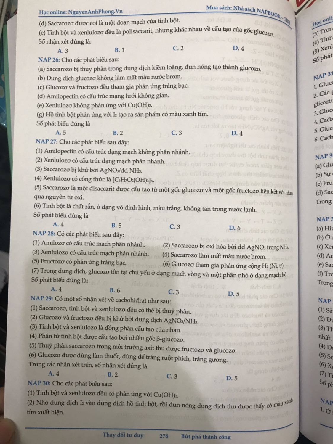 Kỹ Thuật Lan Tỏa Chinh Phục Toàn Diện Lý Thuyết Hóa Học (Lớp 10 – 11 – 12) Từ khi Bộ Giáo dục thay đổi hình thức thi môn Hóa học từ tự luận sang trắc nghiệm và đặc biệt là những năm gần đây, những câu hỏi về lý thuyết nhiều khi trở thành nỗi kinh hoàng với nhiều bạn học sinh. Có rất nhiều lý do, mà một trong số đó là kiến thức lý thuyết về Hóa học THPT áp dụng cho kỳ thi THPT Quốc gia ngày càng rộng và sâu. Với tất cả tâm huyết tác giả biên soạn cuốn sách này với mong muốn giúp các em học sinh nắm chắc kiến thức về lý thuyết Hóa Học THPT để từ đó các em có thể yên tâm và tự tin khi tham dự kỳ thi THPT nói riêng và các kỳ thi về Hóa học nói chung. Cuốn sách này sẽ cung cấp cho các bạn: + Hệ thống đầy đủ những câu hỏi lý thuyết theo từng chương bám sát SGK lớp 10. + Hệ thống đầy đủ những câu hỏi lý thuyết theo từng chương bám sát SGK lớp 11. + Hệ thống đầy đủ những câu hỏi lý thuyết theo từng chương bám sát SGK lớp 12. + Hệ thống đầy đủ những câu hỏi lý thuyết tổng hợp nâng cao bám sát cấu trúc đề thi THPT Quốc Gia.