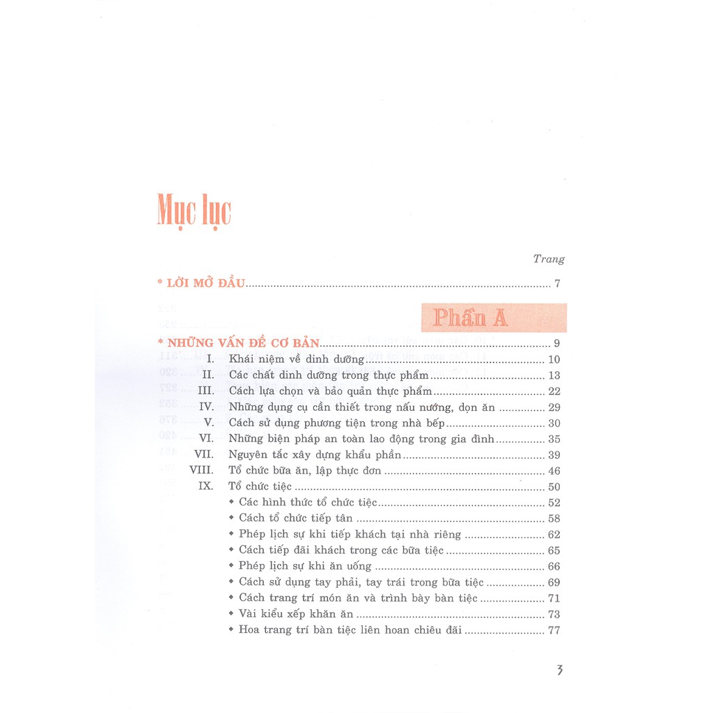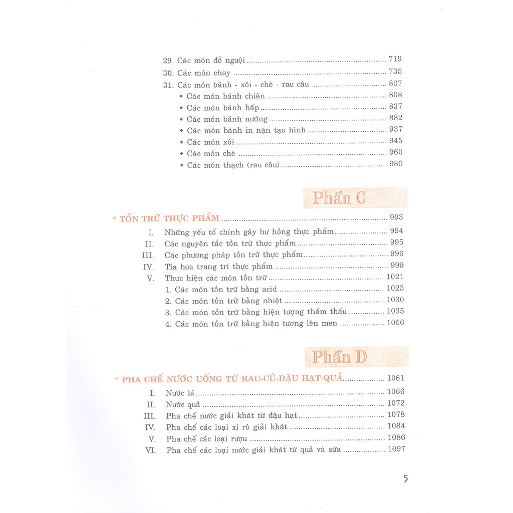 Tên sách: Kỹ Thuật Nấu Ăn Toàn Tập Tác giả: Triệu Thị Chơi Nhà xuất bản: Tổng Hợp Thành Phố Năm xuất bản: 2007 Số trang: 1150 Khổ sách (kích thước): 27 x 19cm Loại bìa: Bìa cứng ISBN/ISSN: 1118020024612 Nội dung: Ăn uống là nhu cầu thiết yếu nhằm duy trì sự sống và sự phát triển của con người. Để việc ăn uống mang lại hiệu quả tốt, cần phải có những thức ăn ngon miệng và bổ dưỡng. Chính vì thế, việc chế biến thức ăn hết sức quan trọng, đòi hỏi phải có sự hiểu biết về lãnh vực dinh dưỡng và thực phẩm, cách tính toán khẩu phần ăn, cách tổ chức bữa ăn, lập thực đơn, phục vụ ăn uống… Song song đó, việc sử dụng các phương pháp làm chín thực phẩm để tạo ra món ăn cũng không kém phần quan trọng. Tuỳ theo tính chất của nguyên liệu thực phẩm và sở thích cá nhân mà chọn cách chế biến phù hợp. Nội dung tài liệu bao gồm tất cả những vấn đề cần thiết trong lĩnh vực ăn uống và dinh dưỡng, từ việc trang bị kiến thức chuyên môn đến việc làm ra các món ăn, món bánh bằng các phương pháp chế biến thức ăn khác nhau, cách tỉa các loại rau, củ, quả, cách sắp xếp trang trí món ăn, trái cây tráng miệng… Giá trị của món ăn không dừng ở phương pháp chế biến, mà còn phải có sự sắp xếp, trình bày trang trí mỹ thuật, nhằm góp phần tạo nên giá trị cảm quan cho người sử dụng. Khi món ăn được trình bày đẹp mắt sẽ kích thích sự chú ý, kích thích dịch vị, tạo sự hấp thu tốt. Tập tài liệu này được trình bày có hệ thống, dưới dạng giáo trình để phục vụ cho sự mong muốn tìm hiểu về vấn đề thực phẩm và dinh dưỡng của các bạn, đồng thời kết hợp rèn luyện kỹ năng thực hành để tạo ra những món ăn thông dụng và bổ ích. Với hy vọng góp phần nhỏ bé vào việc phục vụ đời sống của con người trong lĩnh vực ăn uống, đồng thời tạo nên những kỹ năng cần thiết để có thể giúp các bạn trẻ sử dụng vào việc tự tạo cho mình có vốn liếng nghề nghiệp sau này, chúng tôi cổ gắng tập hợp tư liệu, những kinh nghiệm và kỹ năng thực hành để mang lại hiệu quả thiết thực nhất. Dinh dưỡng gồm hai từ Dinh và Dưỡng. – Dinh là xây dựng, cấu tạo, lo toan. – Dưỡng là nuôi, hấp thụ và đồng hóa thức ăn, bồi đắp những gì đã hao mòn đi trong cơ thể bằng từ những nguyên liệu mới. Từ dinh dưỡng gần đây được đề cập tới nhiều. Thông thường, ai cũng biết dinh dưỡng liên quan đến án uống và sử dụng thực phẩm. Nhưng, ăn uống như thế nào? – Ăn để sống, ăn lấy no, cho ngon miệng hay cần đầy đủ các chất bổ dưỡng để nuôi cơ thể khỏe mạnh hầu bảo đảm hạnh phúc gia đình và góp phần phục vụ tốt cho nhu cầu phát triển của xã hội. Đó chính là vấn dề mà mọi người chúng ta cần đặc biệt quan tâm và có phần trách nhiệm. – Khoa dinh dưỡng ngày nay đă giúp chúng ta rất nhiều trong việc nhận định, lựa chọn thức ăn sao cho phù hợp với từng loại mẫu người. Vậy, dinh dưỡng là gì? Dinh dưỡng có thể định nghĩa là một khoa học, một nghệ thuật xoay quanh việc nuôi dưỡng cơ thể qua cách sử dụng, bảo quản thức ăn giúp cơ thể tăng trưởng một cách bình thường và bảo vệ tôl đa sức khỏe con người. I. TẦM QUAN TRỌNG CỦA VẤN ĐỀ DINH DƯỠNG – Sự sống, sự tăng trưởng và sức khỏe của con người đều phụ thuộc vào thực phẩm. Do đó, thức ăn hàng ngày phải được lựa chọn, thay đổi sao cho phù hợp với túi tiền, lại đầy đủ các chất bổ dưỡng để nuôi cơ thể. Dĩ nhiên, trong tình trạng quá nghèo khó không đủ tiền để mua gì khác hơn gạo, muối, nước mắm, thêm một ít rau cho từng bữa ăn, thì dù có là một chuyên viên dinh dưỡng giỏi cũng đành bó tay không giúp ích gì được. Tuy nhiên, với một gia đình có đồng lương cố định, bình quân thu nhập vừa phải, thì sự hiểu biết về dinh dưỡng có thể hỗ trợ rất nhiều cho việc bảo vệ sức khỏe cá nhân và gia đình. Thức ăn đắt tiền chưa hẳn đã bổ hơn thứ rẻ tiền. Một ví dụ nhỏ là với 500 đồng, ta nên mua một bó rau muống hay một quả dưa leo? – Sự phân chia thực phẩm cho rau có lá xanh như rau muống, rau dền, thường có nhiều chất bổ hơn những rau trái màu lợt như bầu, bí dưa leo…; nho, táo, về mặt dinh dưỡng không hơn nhừng trái cây thông thường như chuối, đu đủ, xoài…; hoặc đường cát vàng tuy rẻ tiền hơn đường cát trắng nhưng có thêm một ít chất khoáng mà trong đường cát trắng không có…