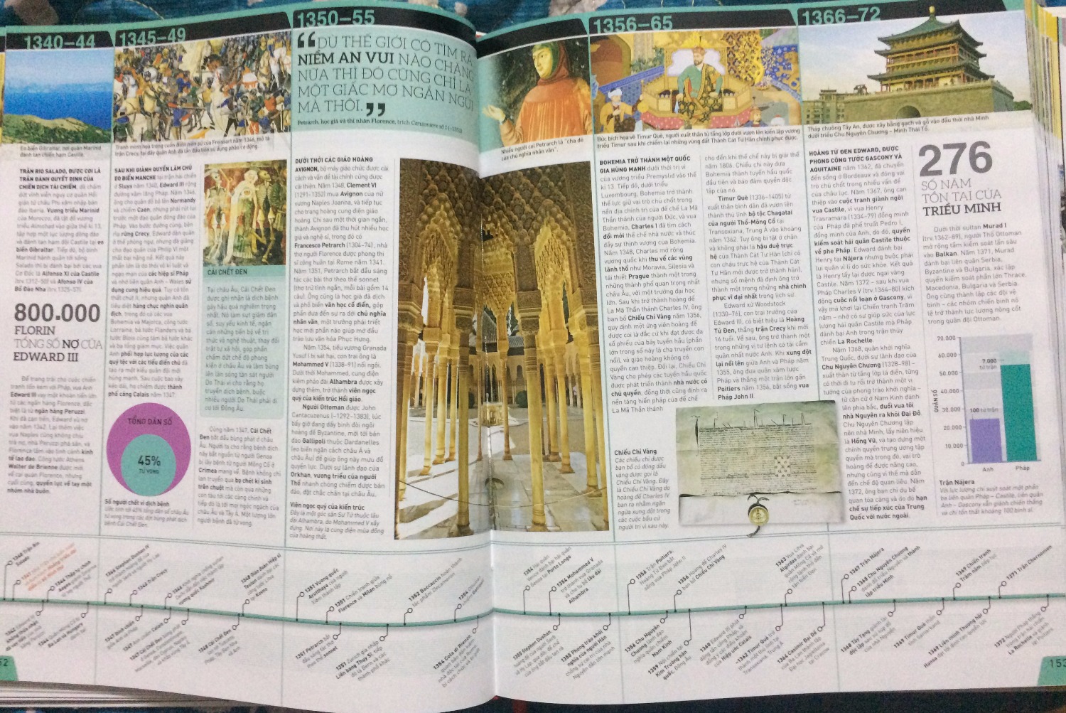 Lịch Sử Thế Giới: Chân Dung Nhân Loại Theo Dòng Sự Kiện Với lượng thông tin và hình ảnh đồ sộ, cuốn sách là hành trình hấp dẫn giúp bạn khám phá các bước tiến lịch sử đã làm nên chân dung nhân loại ngày nay. TOÀN DIỆN VÀ ĐỘC ĐÁO Mở đầu từ sự xuất hiện loài người, cuốn sách đưa bạn qua tiến trình phát triển và suy tàn của các nền văn minh trên toàn thế giới, mà trọng tâm là các sự kiện chiến tranh, thương mại và thám hiểm, các cuộc cách mạng và đổi thay công nghệ… Đặc biệt, nội dung sách không chia theo chủ đề hay khu vực mà được trình bày theo diễn tiến thời gian nhằm giúp bạn có cái nhìn toàn cảnh và so sánh về sự phát triển của các quốc gia, dân tộc tại cùng một thời điểm trong quá khứ. MINH HỌA SỐNG ĐỘNG Bên cạnh lượng thông tin dồi dào, cuốn sách còn cung cấp hơn 1000 hình minh họa độc đáo bao gồm các hiện vật, tác phẩm nghệ thuật, ảnh tư liệu nhằm tái hiện chân dung các nền văn hóa, sự kiện và nhân vật. Ngoài ra, cuốn sách còn có hàng trăm biểu đồ, bản đồ và số liệu phản ánh quy mô, tính chất và diễn biến của các sự kiện, thời kì lịch sử. ĐỘI NGŨ BIÊN SOẠN UY TÍN Đây là công trình biên soạn của nhiều giảng viên, nhà nghiên cứu từ các trường đại học danh tiếng của Anh quốc như Oxford, Cambridge, Edinburgh cùng sự đóng góp của đội ngũ chuyên gia từ Viện Smithsonian, một hệ thống bao gồm gần 20 bảo tàng và trung tâm nghiên cứu cấp quốc gia của Hoa Kỳ, nơi lưu giữ 138 triệu hiện vật cùng các tư liệu quý giá về lịch sử nhân loại. ĐẶC BIỆT BỔ SUNG Với mong muốn tiếp cận tốt hơn sự quan tâm của độc giả trong nước, nhóm biên dịch và hiệu đính đã bổ sung một số sự kiện lịch sử tiêu biểu của Việt Nam vào ấn bản tiếng Việt. Các sự kiện này được chọn lọc một cách cẩn trọng, tuân thủ tinh thần chung của bản gốc để đảm bảo tính nhất quán với tổng thể. Qua đó, bạn đọc sẽ có cái nhìn đối sánh về trình độ phát triển, các bước tiến của lịch sử Việt Nam so với các quốc gia trong khu vực và trên thế giới.