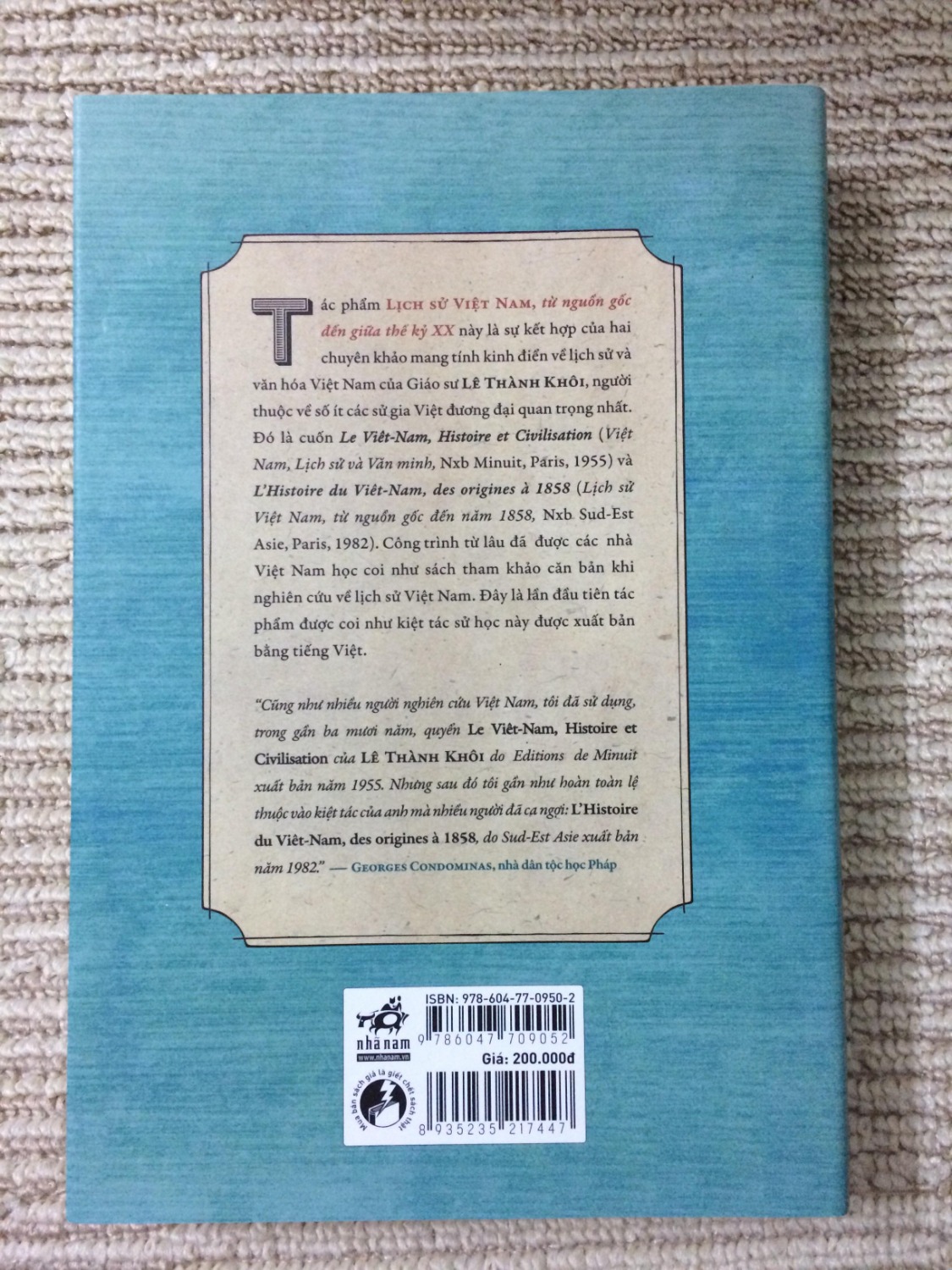 Sách Lịch Sử Việt Nam Từ Nguồn Gốc Đến Giữa Thế Kỉ XX, Tác giả: Lê Thành Khôi, Công ty phát hành Nhã Nam Ngày xuất bản 08-2018 Kích thước 17 x 25 cm Loại bìa Bìa mềm Số trang 642 SKU 6692136224418 Nhà xuất bản Nhà Xuất Bản Thế Giới.