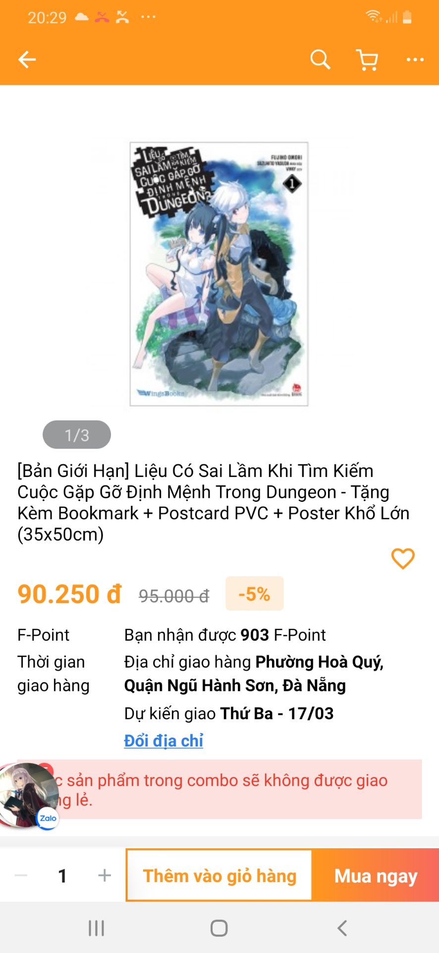 Sách Liệu Có Sai Lầm Khi Tìm Kiếm Cuộc Gặp Gỡ Định Mệnh Trong Dungeon? – Tập 1 review: Đứng thứ 61 trong Top 1000 Light novel bán chạy tháng này, với hơn 66 nhận xét, đánh giá từ độc giả, giá ebook: 74.000 ₫.
