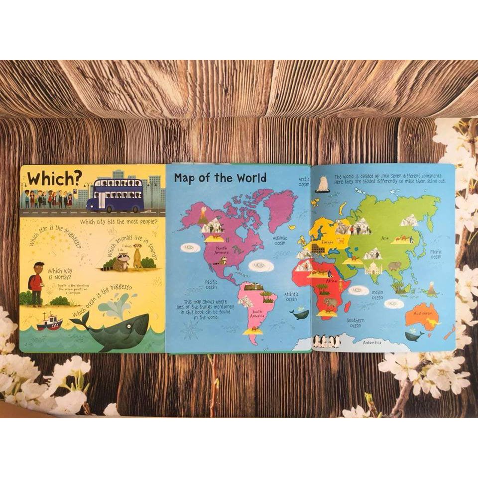 Lift-the-flap questions and answers about our world Lift-the-flap là loạt sách hấp dẫn hơn bất cứ thể loại sách nào khác dành cho trẻ em bởi sách mang tính tương tác rất rất cao. Mỗi cuốn sách tập trung vào 1 chủ đề và được thể hiện hết sức sinh động, khoa học, thông minh; những câu hỏi xoay quanh các nội dung mà trẻ em thường hay tò mò muốn biết trong giai đoạn lên 4 lên 5. Nếu bạn đang có bé trong độ tuổi này, sẽ hiểu được nổi khổ của việc phải trả lời 1000 câu hỏi mỗi ngày…mà nhiều khi ba mẹ còn chưa biết!! Vậy bộ sách QUESTION & ANSWER không chỉ hấp dẫn trẻ mà còn là trợ thủ đắc lực dành cho ba/mẹ. Dành thời gian đọc sách, trao đổi cùng con về những chủ đề hấp dẫn mà mọi trẻ em đều quan tâm chính là chìa khoá để các con phát triển trí tuệ cùng cảm xúc của mình. Mỗi cuốn sách có khoảng từ 50 tới 60 miếng flap, bên trên là các nội dung được thể hiện ngắn gọn và sinh động, bên dưới miếng flap sẽ là câu trả lời hợp lý thoả mãn được sự tò mò của bé, chỉ cần bé lật lên và xem thôi . Chủ đề lần này là sách khám phá về địa lý. Là cuốn sách giải đáp tất cả các thắc mắc của bé về thế giới xung quanh cũng như các hiện tượng tự nhiên mà bé từng được chứng kiến hay xem qua sách báo, màn ảnh hằng ngày như: bão hình thành như nào, khi nào chúng ta nhìn thấy sao băng. Đâu là tận cùng của bầu trời, mây được hình thành thế nào, tại sao mùa hè lại nóng hơn mùa đông… Còn rất nhiều câu hỏi và câu trả lời thú vị đằng sau mỗi tấm flap. Các con chỉ cần lật những tấm flap để tìm ra câu trả lời vừa ngắn gọn vừa khoa học và dễ hểu nhất. tìm câu trả lời cho các câu hỏi như “khi nào tôi có thể nhìn thấy sao băng?”, “thác nước cao nhất thế giới ở đâu?”, “các đám mây được làm từ gì?”, “có bao nhiêu quốc gia, dân tộc và ngôn ngữ trên thế giới này?” Hơn 50 tấm lật với các câu trả lời cho các câu hỏi “who, what, when, why, where” về thời tiết, các mùa, các quốc gia, các ngôn ngữ trên toàn thế giới, trái đất này được cấu tạo từ những gì và nhiều kiến thức khác nữa. Sách bìa cứng, cực xịn xò cực luôn ạ! #sachkhoahoc #sachtunhien #sachhaychotre #sachnuoidaycon #lifttheflap #questionandanswers