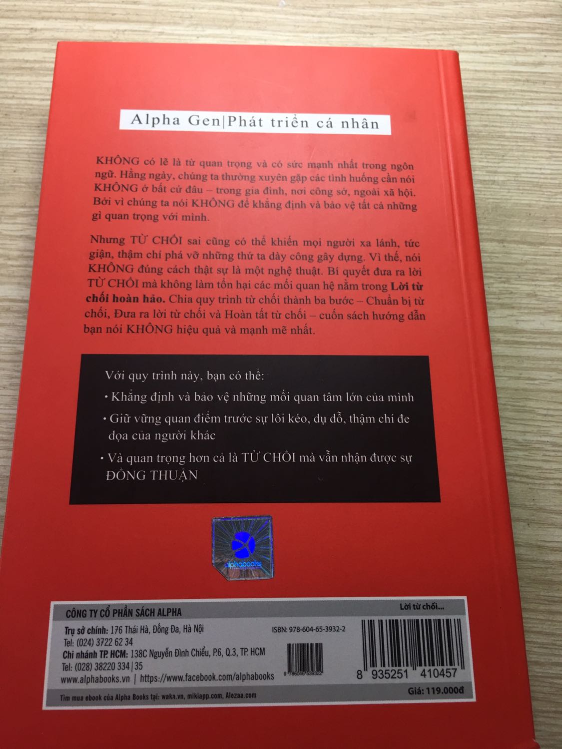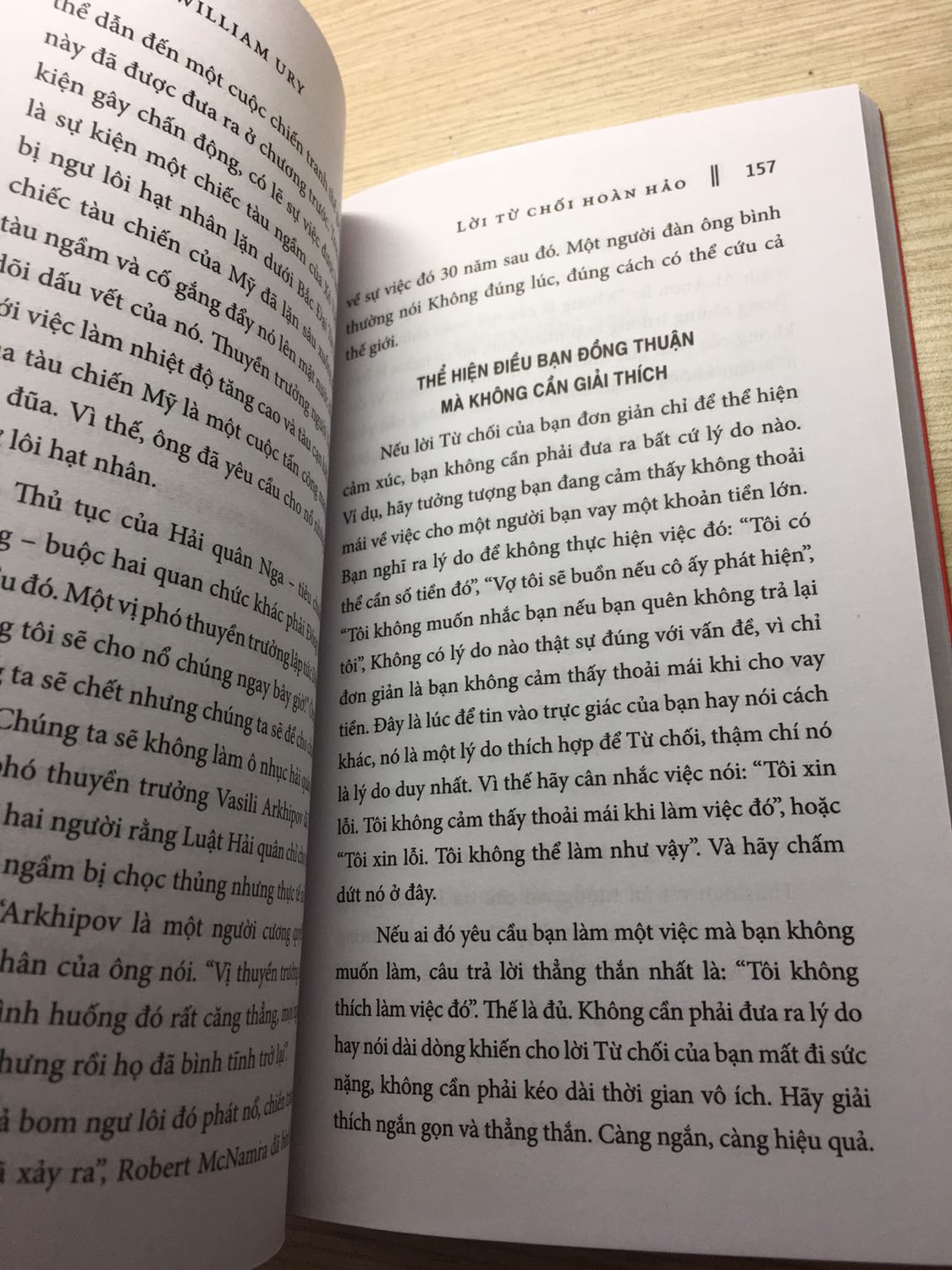 Lời Từ Chối Hoàn Hảo Trong cuộc sống luôn tồn tại nghịch lý: càng có nhiều càng thấy thiếu. Càng làm được việc lại càng được giao thêm việc, giúp được nhiều người lại càng bị nhờ nhiều hơn, càng mua nhiều đồ càng muốn mua nhiều hơn,… Và càng ngày ta càng bị nghịch lý này đày đọa, càng phát triển ta càng vất vả, đau khổ và áy náy. Chúng ta quá coi trọng học “thêm” mà lại quên mất học “bớt”. Chúng ta nói Có với quá nhiều việc tốt, rồi cuối cùng không làm tốt việc nào. Chúng ta cố gắng làm hài lòng tất cả mọi người để không cảm thấy áy náy, cuối cùng lại luôn áy náy vì chẳng làm hài lòng ai. Thứ duy nhất bình đẳng với tất cả mọi người là thời gian, mỗi người đều có một tài sản như nhau – 24 giờ mỗi ngày. Cách bạn đầu tư tài sản này sẽ tạo nên tương lai của bạn. Bạn sẽ thất bại khi cố gắng làm tốt cả mọi việc. Bạn cần biết mình muốn điều gì, cái gì là quan trọng với mình để biết từ chối những điều không muốn, ít có ý nghĩa với bản thân. Trong thế giới càng ngày càng dư thừa vật chất và tràn ngập thông tin, cũng như các trò giải trí, kỹ năng từ chối trở thành một tuyệt chiêu mà chúng ta cần phải học. Tuyệt hảo là không thể bớt được nữa. Muốn thành công, một điều bắt buộc là ta phải từ chối rất nhiều việc. Vậy làm thế nào để lời từ chối của ta không chỉ có sức nặng và còn đáng được tôn trọng, để nói không trở thành một lời từ chối hoàn hảo? Dường như đó là cả một khoa học của nghệ thuật sống. Bạn phải đi qua các giai đoạn tuần tự, từ chuẩn bị, đưa ra và hoàn tất Từ chối. Trong mỗi giai đoạn lại có ba bước khác nhau. Mục đích cuối cùng của bạn không phải là phủ nhận, chỉ trích hay loại bỏ quan điểm, ý kiến, giá trị của người khác mà là khẳng định được những điều mình quan tâm, giá trị của bản thân và đạt được sự đồng thuận của mọi người.