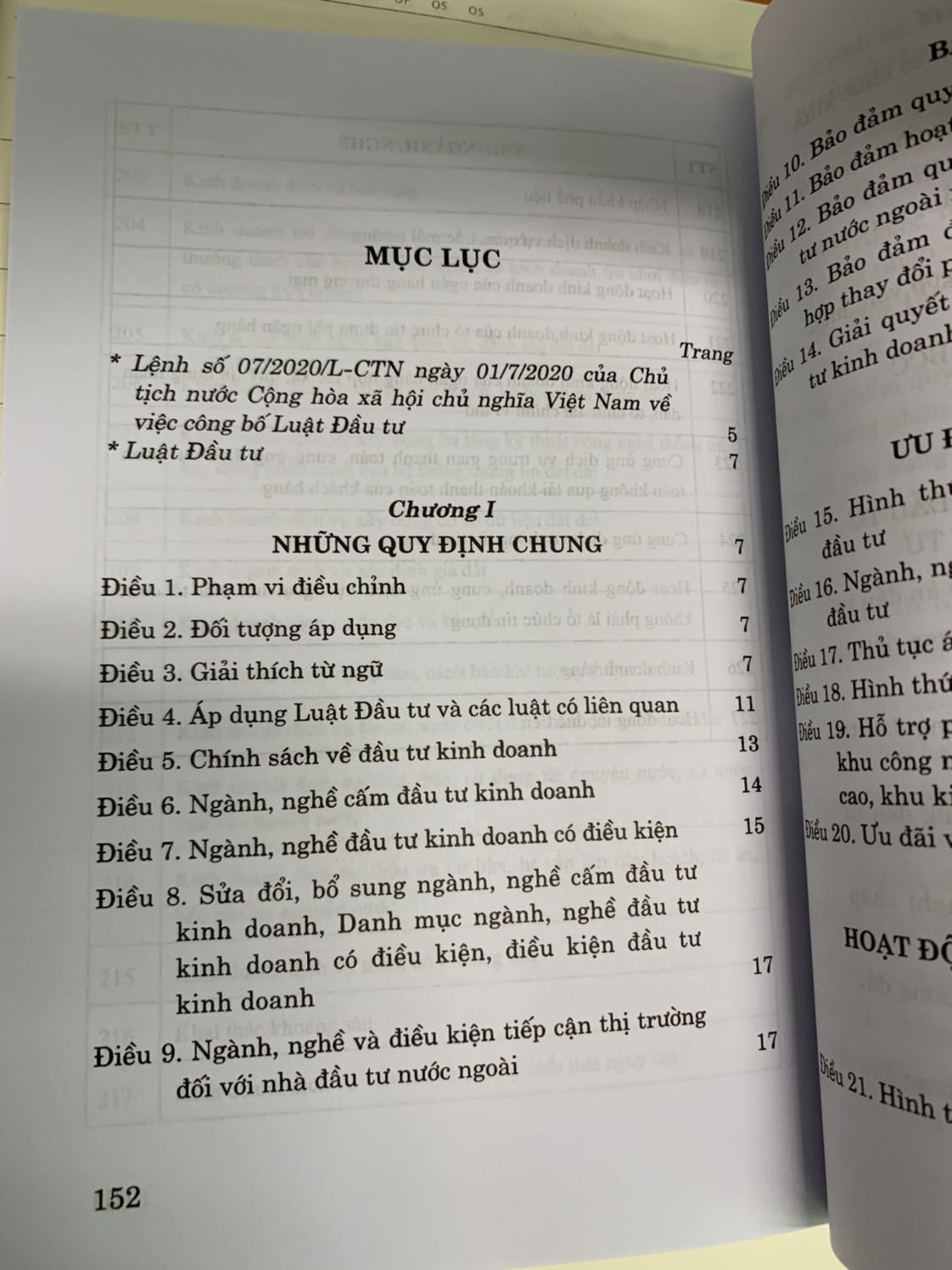 Luật Đầu tư năm 2020 được Quốc hội nước Cộng hòa xã hội chủ nghĩa Việt Nam khóa XIV, kỳ họp thứ 9 thông qua ngày 17 tháng 6 năm 2020, luật này có hiệu lực thi hành từ ngày 01 tháng 01 năm 2021, trừ quy định tại khoản 2 Điều này.