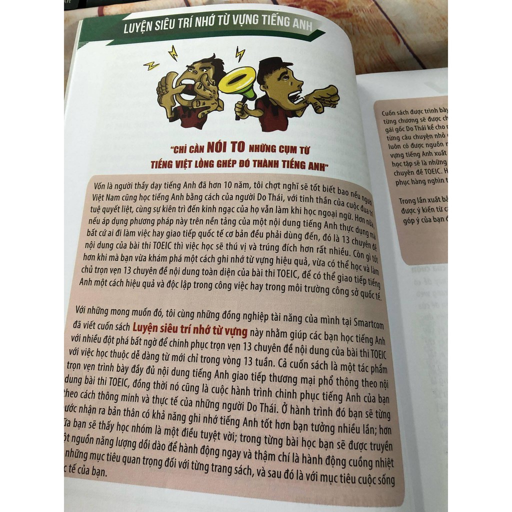 GIỚI THIỆU SÁCH Luyện Siêu Trí Nhớ Từ Vựng Tiếng Anh (Dùng Kèm App) Bạn là người có trình độ tiếng anh sơ cấp Bạn là người có trình độ tiếng Anh sơ cấp và có nhu cầu tìm hiểu phương pháp học tiếng Anh và phương pháp ghi nhớ ngoại ngữ hiệu quả. Để có thể nâng cao trình độ tiếng Anh. Bạn đang cần học cấp tốc tiếng anh Bạn là người cần học nhanh chóng tiếng Anh để phục vụ cho buổi phỏng vấn xin việc hoặc dùng tiếng Anh cho công việc.Nhưng bạn chưa tìm ra phương pháp có thể nhớ nhanh được? Bạn đang luyện thi toeic Bạn đang ôn luyện thi Toeic và chưa biết phương pháp để ghi nhớ Từ Vựng và hệ thống tự vựng dành cho kỳ thi Toeic hiệu quả? Bạn là giáo viên tiếng anh Bạn là những giáo viên tiếng Anh và những người nghiên cứu phương pháp học tiếng Anh hiệu quả. Đẻ phục vụ cho công tác giảng dạy và nghiên cứu dễ dàng hơn? TẤT CẢ NHỮNG GÌ BẠN CẦN LÀ MỘT PHƯƠNG PHÁP HỮU HIỆU VÀ CẤP TỐC HIỂU SÂU và nắm được logic của 13 CHUYÊN ĐỀ điểm bài thi Toeic Hiểu rõ Logic ngữ âm để phát âm chuẩn. Làm chủ các khả năng hồi đáp để đạt điểm tối đa các câu hỏi giao tiếp Luyện kỹ năng đọc và nắm vững vốn từ để hoàn thành tốt các bài đọc hiểu THÔNG TIN CHI TIẾT Công ty phát hành MCBOOKS Tác giả Nguyễn Anh Đức Ngày xuất bản 05-2015 Kích thước 19 x 26 cm Nhà xuất bản Nhà Xuất Bản Đại Học Quốc Gia Hà Nội Loại bìa Bìa mềm Số trang 333 Ngày phát hành: 3/2018