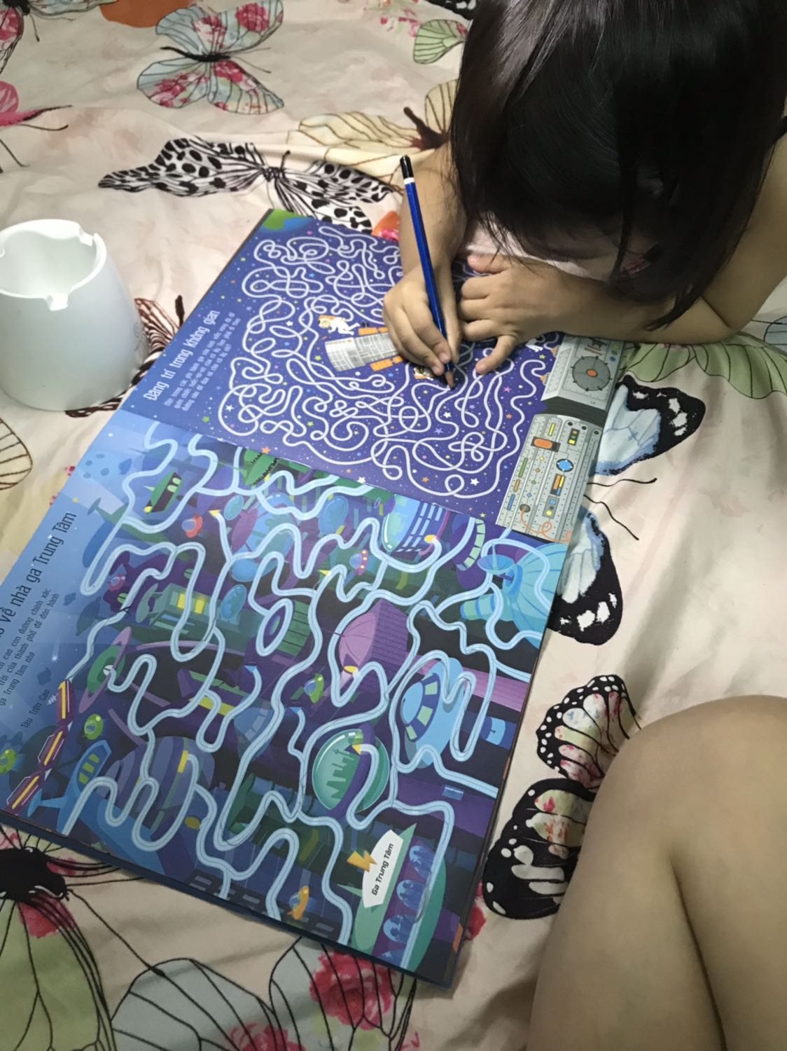 Những điểm hấp dẫn của bộ sách MÊ CUNG của Nhà Phát Hành Pingbooks: Bộ sách MÊ CUNG PHÁT TRIỂN TƯ DUY đúng như tên gọi Chính của các tập sách, giúp trẻ phát triển rất nhiều kĩ năng thông qua việc tìm đường đi trong mê cung. – Khả năng quan sát. – Khả năng phân tích – Rèn luyện tính kiên trì – Rèn luyện tinh thần trách nhiệm – Ngoài ra, bộ MÊ CUNG còn có một số ưu điểm nổi bật sau: – Củng cố kiến thức về màu sắc. Sách được IN MÀU hoàn toàn giúp trẻ nhận diện được màu sách một cách chính xác và đa dạng. – Chủ đề mê cung đa dạng. Từ công viên, nông trại, động vật cho tới các vì sao, sân bay…. – Mở mang kiến thức về đời sống xung quanh cho trẻ. – Là bộ sách tương tác tốt giữa cha mẹ và con cái. Bố mẹ có thể hướng dẫn cách chơi hoặc gợi ý cho trẻ khi trẻ cần sự giúp đỡ. – Hỗ trợ tốt cho trẻ nhỏ đang trong giai đoạn “tìm hiểu” về thế giới xung quanh. – Là bộ sách đa năng cho trẻ. Trẻ có thể tự chơi một mình hoặc chơi theo nhóm, những đứa trẻ sẽ học được cách giúp đỡ lẫn nhau đấy. Và rất nhiều ưu điểm nữa, các mẹ hãy mua sách về để khám phá cùng các con nhé.