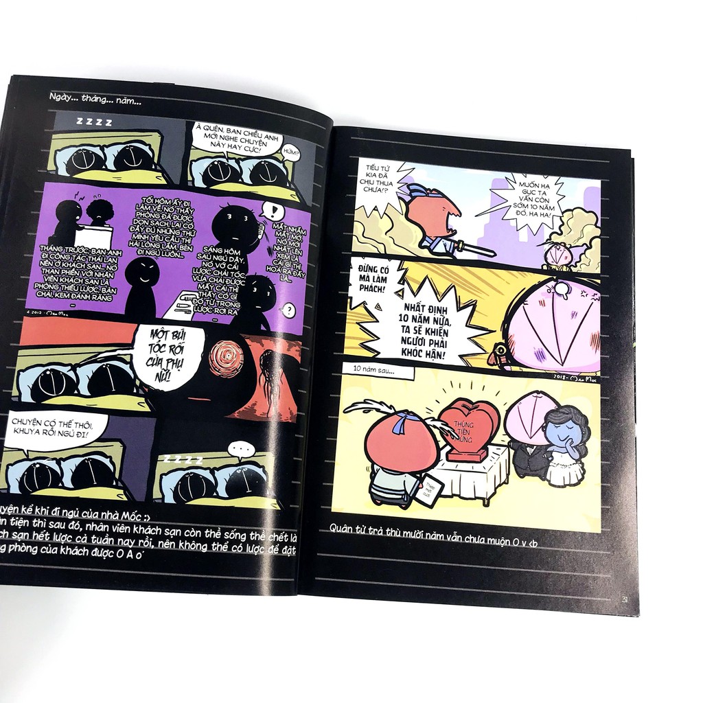 Mèo Mốc Combo gồm 5 quyển: 1.Mèo Mốc – Chuyện Đèn Đỏ & Cái Lỗ Đen Vũ Trụ Chiến dịch “mốc hóa” thế giới đã chính thức trở lại. Với sự thành công của chiến dịch lần một, Mèo Mốc quyết định sẽ đẩy chiến dịch lần hai này lên tới cao trào!!! Bởi những nét vẽ cùng màu sắc vô cùng đáng yêu và khuôn mặt thộn thộn của con Mốc sẽ khiến bạn khó mà chống cự lại được! Có muốn cũng không nổi, con Mốc sẽ khiến bạn cười ngặt nghẽo, quên hết mọi sự rồi để bị Mốc hóa lúc nào không biết, đến lúc nhận ra thì đã quá muộn. Nhưng nếu bị Mốc meo mà quên hết được sự đời thì cũng xứng đáng đúng không nào? 2.Mèo Mốc – Hãy Ngắm Nhìn Bầu Trời Trên trời có bao nhiêu vì sao, thì đời Mốc có bấy nhiêu chuyện éo le ngang trái! Sau một thời gian thu quân dưỡng sức hậu chiến dịch “Mốc hóa Singapore”, anh Mèo Văn Mốc đã quay trở lại, “mỡ màng” và đen bóng hơn xưa. Và để kỉ niệm cho lần quay trở lại này, anh đã cho ra mắt cuốn tiếp theo trong bộ sách mốc meo đen-nhứt-vịnh-Bắc-Bộ lừng lẫy của mình với tên gọi: “Mèo Mốc – Hãy ngắm nhìn bầu trời”. “Mèo Mốc: Hãy ngắm nhìn bầu trời” cũng là cuốn sách sẽ khiến bạn đột nhiên nhận ra, không biết từ lúc nào, con mèo số nhọ đen thùi lùi ấy đã trở thành một phần cuộc sống của mình, và cùng mình chia sẻ những cảm xúc thật riêng tư. Hãy nhìn bầu trời lấp lánh những vì sao cùng Mốc, và nhớ về những điều nhỏ xinh hạnh phúc mà chúng ta đã cùng sẻ chia! 3.Mèo Mốc – Hành Trình Tới Singapore MÈO MỐC 3 – “MỐC” HÓA THÀNH CÔNG ĐẢO QUỐC SƯ TỬ!!! Hẳn bạn đã quen với hình ảnh chú sư tử cá Merlion oai nghiêm của đảo quốc sư tử Singapore? Vậy bạn có biết con sư tử đầu Mốc Mốc-lion? Cũng mình cá, cũng bờm, cũng phun nước… Mốc-lion chính là sản phẩm “cosplay lỗi” do một con mèo béo đen thùi lùi, thân hình số 8 mọc “chia chia” trên đầu thực hiện. Ấy, đừng bỉ bai vội, con sư tử Mốc này không phải dạng vừa đâu. Mốc-lion nó là biểu tượng chiến thắng của chiến dịch Mốc hóa thế giới giai đoạn 3 đó! 4.Mèo Mốc – Nhật Kí Mèo Mốc Cuốn sách cho những người trẻ, đáng yêu và hay cười. Mèo Mốc đơn giản là một con mèo siêu bình thường, đen thùi lũi nhìn thấy mỗi 2 mắt. Con Mèo đen thui ấy chả có gì ngoài vài ba mẩu chuyện “thị phi” hàng ngày ai cũng gặp: chuyện đi học, đi thi, xem phim ma, ngủ nhà bạn, tìm đồ thất lạc, ngủ nướng… Tùm lum mọi chuyện dở hơi, buồn cười nhưng siêu đáng yêu hàng ngày được Mèo Mốc ghi lại bằng tranh trong nhật ký của mình. Nhật ký Mèo Mốc đến với bạn để mang tiếng cười, một kiểu càng ngẫm càng cười. Đơn giản vậy thôi! 5.Mèo Mốc – Ơ, Sinh Nhật Rồi Này? Hỡi các bạn độc giả, những người đã “quen hơi” anh chàng Mèo Mốc đen bóng mỡ màng, các bạn có biết một chuyện thực-sự-vô-cùng-rất-là-quan-trọng sắp xảy ra không (à, tên tập sách tiết lộ mất rồi)? Chúng mình đang cùng nhau đếm ngược đến sinh nhật của anh Mèo Văn Mốc!!! Chúc mừng sinh nhật Mốc! Chúc mừng Mốc 5 tuổi! Chúc mừng Mốc sắp vào lớp Một!!!! Ơ… có gì không đúng lắm thì phải. Từ Nhật ký Mèo Mốc cho tới Chuyện đèn đỏ và cái lỗ đen vũ trụ, từ chuyến Hành trình tới Singapore cho tới Hãy ngắm nhìn bầu trời, nhân vật Mèo Mốc, với sự lạc quan và óc hài hước, đã dẫn độc giả bước theo từng chương, từng chương trong công cuộc “Mốc hóa thế giới” của mình. —— Công ty phát hành Sky Comics Tác giả Mèo Mốc Năm xuất bản 2018 Nhà xuất bản Nhà xuất bản Dân Trí Kích thước 13 x 19 cm Số trang 152,181,181,184,152 Loại bìa Bìa mềm
