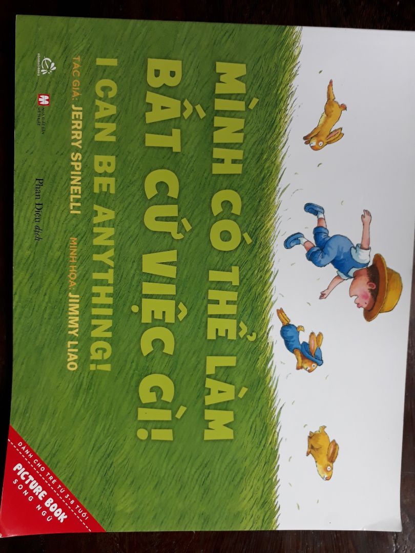 Mình Có Thể Làm Bất Cứ Việc Gì! – I Can Be Anything! Nếu các bé thắc mắc: “Khi mình lớn lên, mình sẽ làm gì nhỉ?”, hẳn ba mẹ sẽ nghĩ các bé muốn làm bác sĩ chữa bệnh cho mọi người, làm cô giáo để dạy toán cho các em nhỏ, làm một chú công an hay một người lính cứu hỏa oai phong… Có rất nhiều nghề cho các bé yêu thích và lựa chọn. Nhưng… Ba mẹ có biết trong đôi mắt của trẻ thơ, thế giới xung quanh tuyệt vời như thế nào không? Suy nghĩ của các em lại khác hoàn toàn so với những gì ba mẹ nghĩ. Chắc chắn ba mẹ sẽ bất ngờ bởi khi lớn lên, các bé sẽ thích làm “người trồng bí ngô”, “người bế cún con”, “người dỗ dành em gái nhỏ, “người cười ngoác mang tai”, hay thậm chí là “người uống nước chanh ừng ực”… Tất cả những “công việc” đó được thể hiện một cách hóm hỉnh và vui tươi trong cuốn sách “Mình có thể làm bất cứ việc gì! – I can be anything!” của tác giả Jerry Spinelli và được minh họa bằng những bức tranh tuyệt vời của họa sĩ Jimmy Liao. Với cuốn sách song ngữ xinh đẹp này, các bé sẽ được chìm đắm trong thế giới của riêng mình, nơi trí tưởng tượng bay xa và các em có thể làm bất cứ việc gì mà mình thích. Chưa hết, ba mẹ và các bé sẽ khám phá ra tên gọi của rất nhiều “công việc” trong tiếng Anh, và sau cùng bé sẽ chọn công việc nào nhỉ? Câu trả lời sẽ có trong “Mình có thể làm bất cứ việc gì! – I can be anything!” – Cuốn sách tuyệt vời mô tả thế giới trong đôi mắt trẻ thơ…