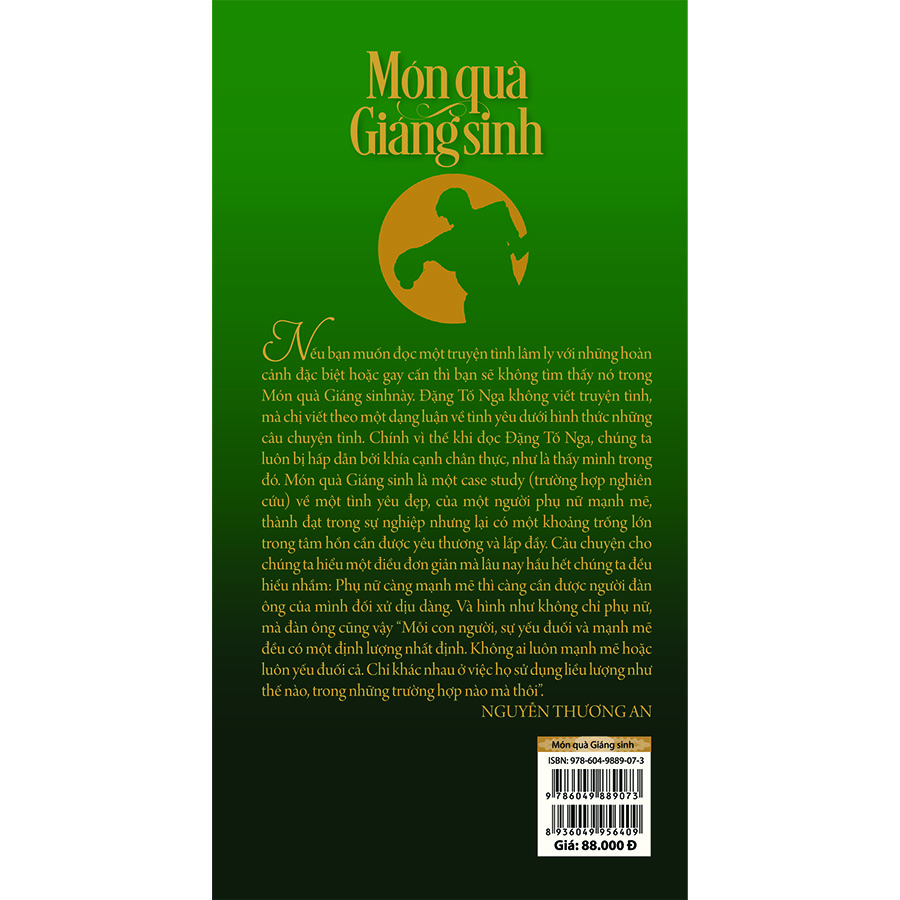 Nếu bạn muốn đọc một truyện tình lâm ly với những hoàn cảnh đặc biệt hoặc gay cấn thì bạn sẽ không tìm thấy nó trong Món quà giáng sinh này. Đặng Tố Nga không viết truyện tình mà chị viết theo một dạng luận về tình yêu dưới hình thức những câu chuyện tình. Chính vì thế khi đọc Đặng Tố Nga, chúng ta luôn bị hấp dẫn bởi khía cạnh chân thực, như là thấy mình trong đó. Món quà giáng sinh là một case study về một tình yêu đẹp của một người phụ nữ mạnh mẽ, thành đạt trong sự nghiệp nhưng lại có một khoảng trống lớn trong tâm hồn cần được yêu thương và lấp đầy