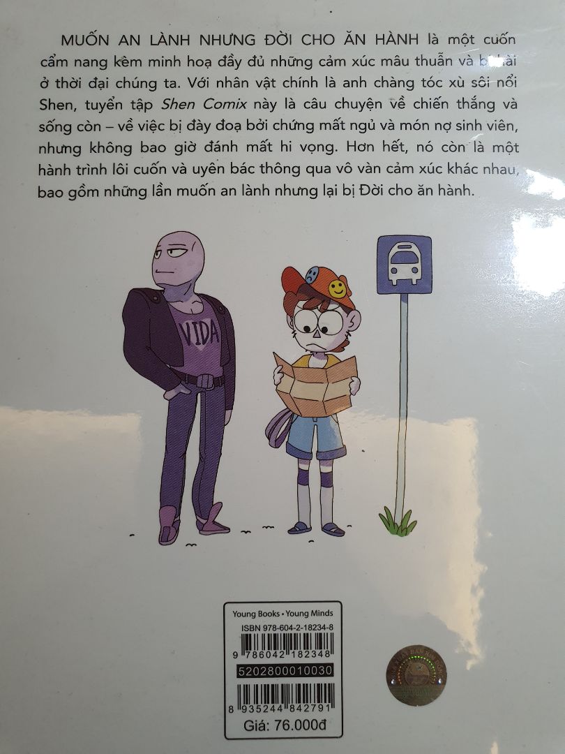 MUỐN AN LÀNH NHƯNG ĐỜI CHO ĂN HÀNH là một cuốn cẩm nang kèm minh hoạ đầy đủ những cảm xúc mâu thuẫn và bi hài ở thời đại chúng ta. Với nhân vật chính là anh chàng tóc xù sôi nổi Shen, tuyển tập Shen Comix này là câu chuyện về chiến thắng và sống còn – về việc bị đày đoạ bởi chứng mất ngủ và món nợ sinh viên, nhưng không bao giờ đánh mất hi vọng. Hơn hết, nó còn là một hành trình lôi cuốn và uyên bác thông qua vô vàn cảm xúc khác nhau, bao gồm những lần muốn an lành nhưng lại bị Đời cho ăn hành. Andrew Tsyaston sống giữa một khu rừng tại trung tâm California và tranh thủ vẽ truyện đăng Internet khi trốn thoát được lũ sói lang thang. Anh mong mình có thể tiếp tục sáng tác lâu dài. Nhưng chưa biết lũ sói có chịu cho anh làm chuyện đó hay không.