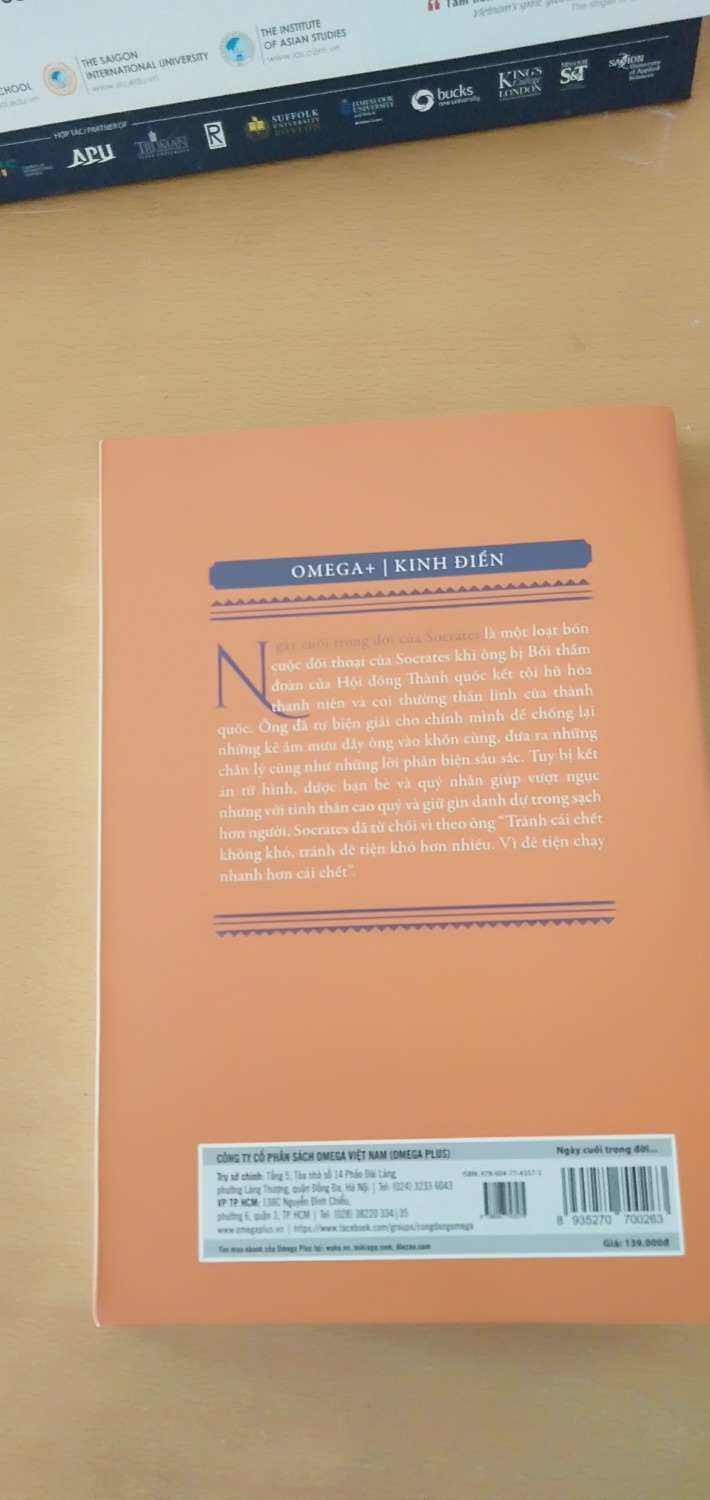 Sách Ngày Cuối Trong Đời Socrates, Tác giả: Plato, Công ty phát hành Omega Plus Ngày xuất bản 03-2018 Kích thước 14 x 20.5 cm Dịch Giả Đỗ Khánh Hoan Loại bìa Bìa mềm Số trang 340 SKU 9144942959475 Nhà xuất bản Nhà Xuất Bản Thế Giới.