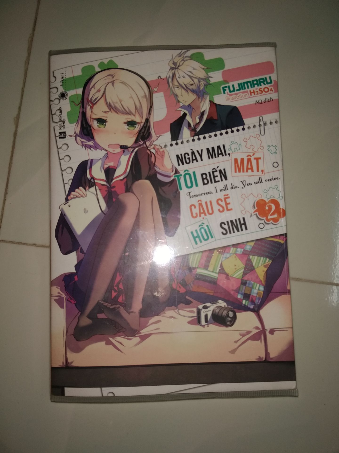 Ngày Mai, Tôi Biến Mất, Cậu Sẽ Hồi Sinh – Tập 2 “Ngày mai, tôi biến mất, cậu sẽ hồi sinh” (tên gốc: Ashita, boku wa shinu, kimi wa ikikaeru) là tiểu thuyết đầu tay của tác giả Fujimaru, đã xuất sắc giành giải vàng (Golden prize) tại cuộc thi viết light novel lần thứ 19 của Dengeki Bunko. “Ngày mai, tôi biến mất, cậu sẽ hồi sinh” là một câu chuyện tình lãng mạn được pha chế với những gia vị độc đáo, tạo nên cảm xúc thăng hoa và bất ngờ không giống với bất kỳ motif tiểu thuyết nào trước đấy. Người đọc có thể có được những phút giây thư giãn hài hước với những nội dung gần gũi, giản dị và tươi sáng nhưng cũng từ đấy mà những diễn biến éo le xảy ra ngay lập tức, khiến ta phải tự hỏi không biết liệu tác giả có đang đùa giỡn với mình không? Cốt truyện liên tục được phát triển và mở rộng xuyên suốt 3 tập truyện, các nhân vật, các tình tiết luôn có hướng phát triển riêng và những diễn tiến mới, đưa độc giả tới bất ngờ này cho tới bất ngờ khác. Yumesaki Hikari, cô gái vốn dĩ đã qua đời vì tai nạn giao thông, nay đã trú ngụ trong thân thể Sakamoto Akitsuki. Cứ cách một ngày, linh hồn của họ lại hoán đổi cho nhau, luân phiên điều khiển cơ thể Sakamoto với ký ức độc lập. Và như vậy, cuộc sống chung thân thể, chỉ có thể liên lạc với nhau qua nhật ký của họ cứ thế trôi đi đến kỳ nghỉ mùa hè. Ngày nọ, cô nàng siêu ngốc thích bày trò chơi khăm kia thông báo cho Akitsuki một tin cực chấn động: “Sakamoto! Hình như e-em gái có bạn trai rồi?” Cái gì thế hả? Nhưng mà tại sao cô em gái lại ôm gối rưng rưng, rồi giận rỗi với Sakamoto? Và rồi, vào một buổi sáng trong kỳ nghỉ, sự cố khủng khiếp đã xảy ra, báo hiệu hiện thực tàn khốc sắp tới. Thời điểm họ đổi chỗ cho nhau đã sớm hơn 5 phút – tức thời gian hồi sinh của Hikari đã giảm đi 5 phút. Ngay cả mẹ của Hikari cũng bắt đầu xuất hiện những biểu hiện đau buồn tuyệt vọng! Sakamoto sẽ phải đối mặt với thực tế rằng… Hikari đã không còn tồn tại nữa như thế nào? Phần thứ hai trong vở hài kịch tuổi thanh xuân của hai con người luôn nương tựa vào nhau nhưng vĩnh viễn không thể gặp mặt!