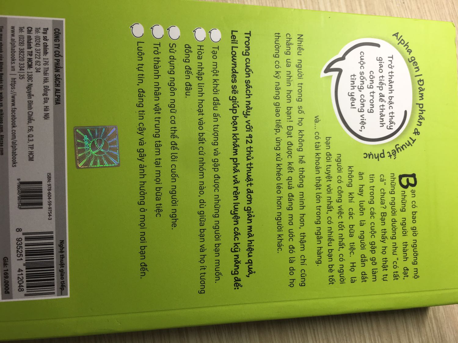 Nghệ Thuật Giao Tiếp Để Thành Công (Tái Bản 2019) Nghệ thuật giao tiếp để thành công hướng tới mọi đối tượng độc giả, dù là sinh viên, nhân viên bán hàng, doanh nhân, nhà quản lý, chính trị gia hay người nội trợ hoặc bất cứ ai muốn kiểm soát các mối quan hệ, thu nhập hay cuộc đời họ theo cách hiệu quả hơ Họ là người có công việc tốt nhất, có người bạn đời tuyệt vời nhất, có nhiều bạn bè tốt và có tài khoản thật lớn trong ngân hàng. Vì sao họ đạt được những điều đó? Phải chăng họ có đôi tay của vua midas chạm vào bất cứ đâu mọi thứ đều biến thành vàng? Hay họ được ban tặng nhiều hơn? Không phải vậy. Nhiều người trong số họ không hề thông minh hơn, thậm chí cũng chẳng ưa nhìn hơn bạn! Sự thật những người thành đạt như vậy thường có khả năng giao tiếp, ứng xử khéo léo hơn người khác. Sự thật khác có thể khiến bạn ngạc nhiên là ai trong chúng ta cũng tiềm ẩn khả năng này, chỉ có điều là người có nhiều, người có ít mà thôi. Trong Nghệ thuật giao tiếp để thành công, với 92 thủ thuật đơn giản mà hiệu quả, Leil Lowndes sẽ giúp bạn khám phá và rèn luyện các kỹ năng để: Tạo một khởi đầu ấn tượng và gặp được những người bạn muốn; Hòa nhập linh hoạt vào bất cứ nhóm nào, dù giữa bạn và họ ít tương đồng đến đâu; Sử dụng ngôn ngữ cơ thể để lôi cuốn người nghe; Trở thành nhân vật trung tâm tại mọi bữa tiệc; Luôn tự tin, đáng tin cậy và gây ảnh hưởng ở mọi nơi mà bạn đến.
