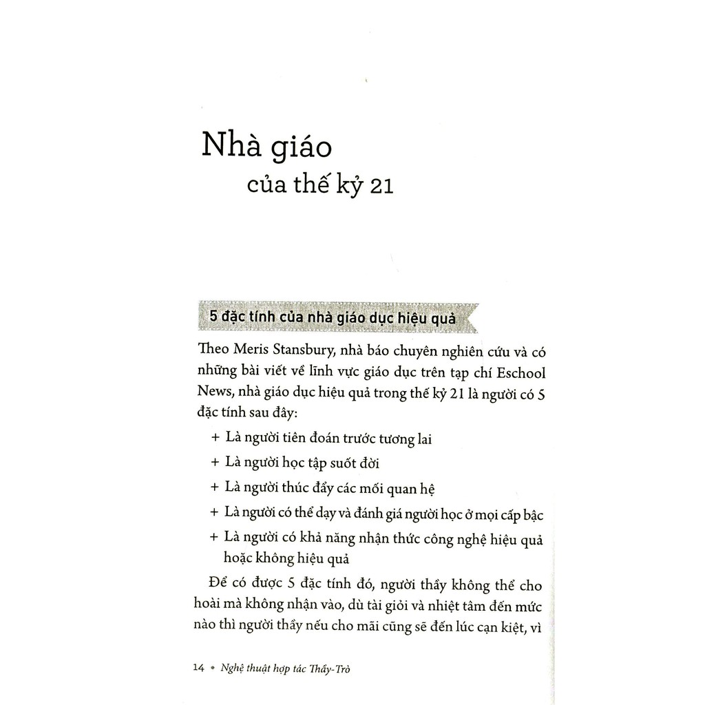 Cái hay của bài học nhiều khi không nằm trong sách vở mà đến từ chính sự giảng dạy của người thầy – thông qua phương pháp và cách nhìn nhận vấn đề của thầy – khiến trò tìm thấy động lực và hứng thú trong học tập, mà tiếp thu, vận dụng theo tư duy kết nối thầy – trò. Bài học của thầy rồi trò có thể quên nhưng cách thức và quan điểm thì sẽ thấm sâu, rất sâu, cho tới nhiều năm sau khi trò trưởng thành, những ảnh hưởng đó vẫn còn tác động đến trò trong cách đối nhân xử thế và con đường sự nghiệp. Hay có thể nói sự hợp tác giữa Thầy và Trò hôm nay có ảnh hưởng đến tương lai của trò chứ không chỉ là chuyện học hành trong lớp, hiểu bài, làm được bài và thi đậu. Vì vậy, sự hợp tác đó không là mối quan hệ xã hội đơn thuần hay phương pháp học, phương pháp dạy, mà là một nghệ thuật – Nghệ Thuật Hợp Tác Thầy Trò.Sách góp nhặt nhiều tình huống thực tế trong việc giảng dạy ở nước ta và của chính tác giả, cùng những phương pháp giáo dục thành công trên thế giới mà người dạy có thể tham khảo và vận dụng linh hoạt.Mời bạn đón đọc. Tác giả: Nguyễn Công Điền Nhà Xuất Bản: Nxb Trẻ Nhà Phát Hành: NXB Trẻ Năm Xuất Bản: 2017 Số Trang: 172
