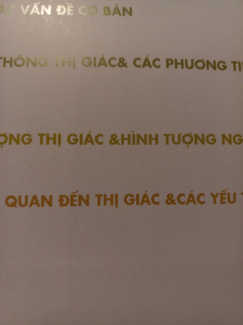 Nghệ Thuật Thị Giác & Những Vấn Đề Cơ Bản Các yếu tố thị giác Nguyên lý thị giác Tư duy thị giác Bố cục thị giác Khi nói đến các ngôn ngữ nghệ thuật thì người ta dựa trên những đặc trưng ngôn ngữ và quan năng cảm thụ để rồi chia nó làm ba lĩnh vực lớn tương ứng: Nghệ thuật không gian (Spacial Arts) bao gồm mỹ thuật và kiến trúc, Nghệ thuật thời gian (Temporal Arts) bao gồm văn, thơ, âm nhạc… và Nghệ thuật không gian – thời gian (Spacial Temporal Arts) bao gồm nghệ thuật sân khấu, tạp kỹ, điện ảnh. Ở đây, chúng tôi đề cập chủ yếu đến vấn đề quan năng cảm thụ của nghệ thuật không gian là con mắt (thị giác). Do đó, nó còn được gọi là Nghệ thuật thị giác (Visual Arts); quan năng cảm thụ của Nghệ thuật không gian – thời gian, tức là Nghệ thuật tổng hợp là cả hai: thị giác và thính giác. Nghệ thuật tạo hình (Plastic Art) và tất cả các loại hình nghệ thuật như nghệ thuật trang trí (Decorative Art), nghệ thuật thiết kế (Design Art) và nghệ thuật thủ công (Craft Art) của lĩnh vực mỹ thuật Ứng dụng (Applied Art) cũng là những bộ phận của nghệ thuật thị giác. sách nghiên cứu, lý luận phê bình, sáng tác nghệ thuật thị giác Sách đạt giải thưởng của Hội Mỹ thuật Việt Nam 2018