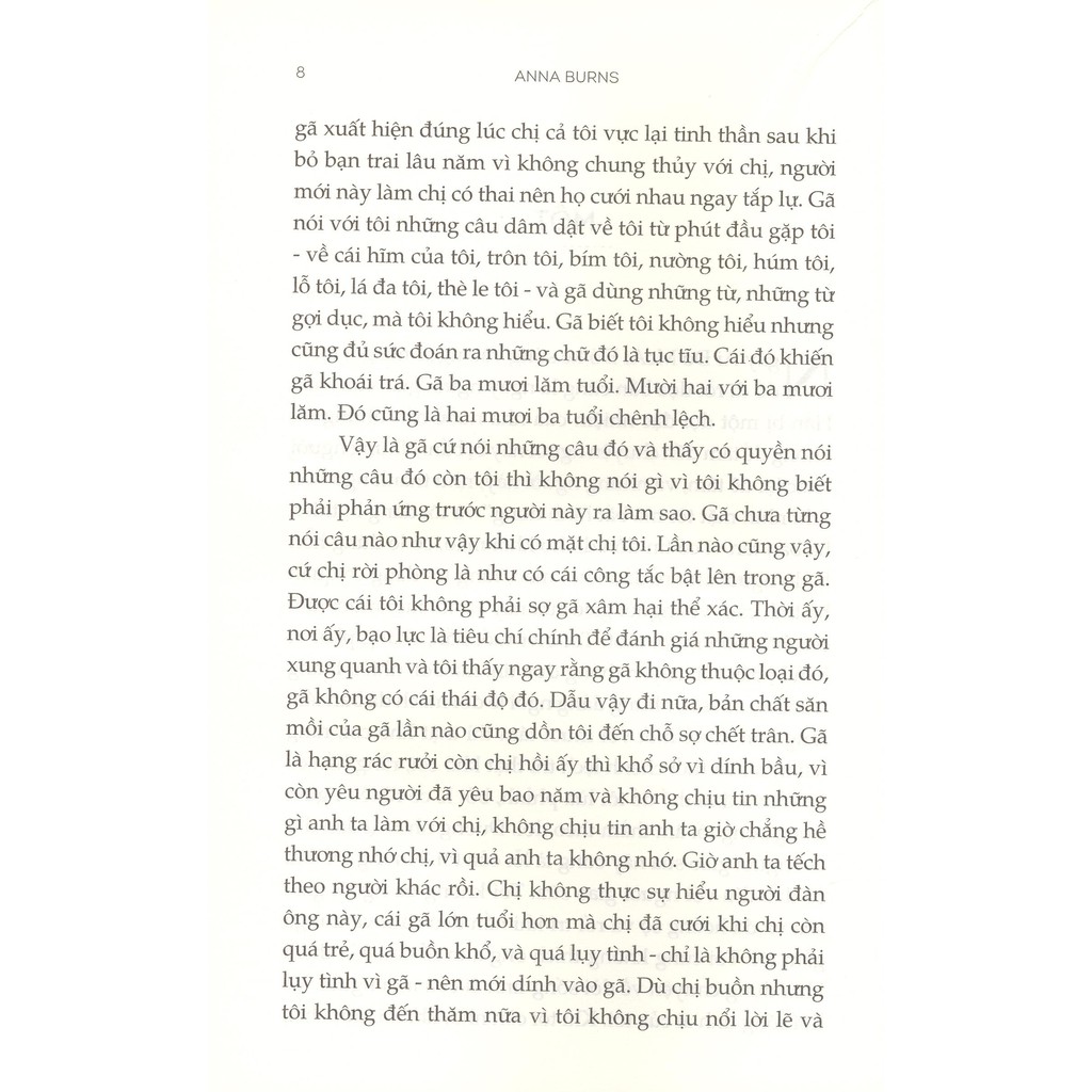 Tên sách: Người Giao Sữa Tác giả: Anna Burns Nhà xuất bản: Hội Nhà Văn Năm xuất bản: 2020 Số trang: 464 Khổ sách (kích thước): Loại bìa: Bìa mềm ISBN/ISSN: 9786049911330 Nội dung: NGƯỜI GIAO SỮA – TÁC PHẨM ĐẠT GIẢI MAN BOOKER 2018 Hội đồng giám khảo giải Man Booker (một trong những giải thưởng văn học danh giá nhất hành tinh) đã nhận định: “Vừa gây sợ hãi lại vừa truyền cảm hứng, Người giao sữa là tác phẩm có phong cách tuyệt đối riêng biệt… Một câu chuyện hoàn toàn độc đáo về Ireland vào thời kỳ Nhiễu nhương qua trí óc của một cô gái trẻ… Một tác phẩm choáng váng” TÓM TẮT: Trong một thành phố không tên, một cô gái mười tám tuổi bị rình rập bởi một kẻ được gọi là Người giao sữa. Cô không chỉ phải trốn tránh hắn, mà còn phải đối phó với những đơm đặt đàm tiếu từ chính gia đình và cộng đồng của mình. Người giao sữa là cái nhìn của một cô gái trẻ về thời kỳ Nhiễu nhương ở Ireland với những xung đột tôn giáo và chính trị len lỏi vào mọi ngõ ngách trong đời thường, chắp cánh cho những thù hằn, tị hiềm, ác ý hèn lạ lan tràn tạo nên một bầu không khí ngột ngạt, sợ hãi và cũng không kém phần nực cười. Bằng văn chương lạnh lùng và châm biếm, Anna Burns đưa người đọc đi xuyên qua một cuộc sống u ám trĩu nặng thứ lịch sử đầy mất mát và nghi kỵ, nơi mỗi hành động dù nhỏ nhất đều kéo theo một mê cung bất tận những nguy cơ và chằng chịt những hậu quả khôn lường. Người giao sữa là cuốn tiểu thuyết phi thường về sự trưởng thành của con người trong một thế giới đã trở nên ngập tràn cạm bẫy.
