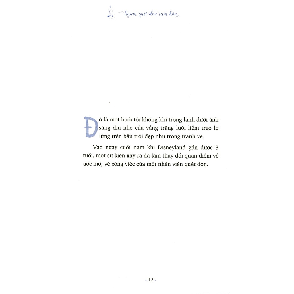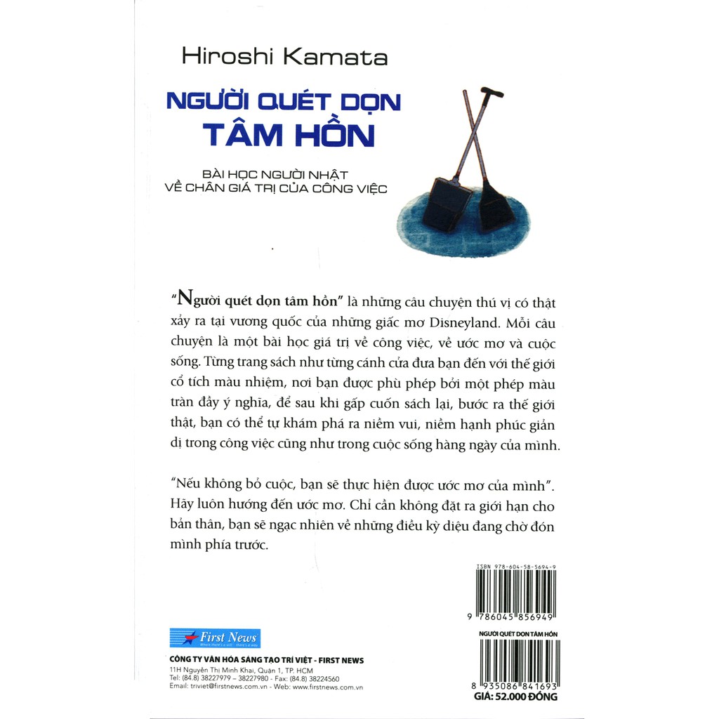 THÔNG TIN CHI TIẾT Công ty phát hành First News – Trí Việt Tác giả Hiroshe Kamata Ngày xuất bản 12-2016 Kích thước 13 x 20.5 cm Nhà xuất bản Nhà Xuất Bản Tổng hợp TP.HCM Loại bìa Bìa mềm Số trang 136 GIỚI THIỆU SÁCH Người Quét Dọn Tâm Hồn là những ghi chép của Hiroshe Kamata, người đã có 15 năm cống hiến cho việc giữ sạch công viên giải trí Disneyland Nhật Bản. Vì điều này mà những diễn biến trong tập sách đều là câu chuyện có thật, xảy ra tại nơi được mệnh danh là vương quốc của những giấc mơ. Điểm thú vị là những nhân vật của Hiroshe Kamata đều đang ở những vị trí khá thấp. Đó là những người quét dọn, người giữ sạch Disneyland Nhật Bản, giữ cho những thứ đồ chơi trong công viên này long lanh để phục vụ du khách… Có người yêu thích, có người không yêu công việc họ đang làm. Cũng có người yêu thích, nhưng vẫn nhiều mặc cảm khi ở trong bộ đồng phục lao công, chiếc chổi trên tay… Nhưng, qua những tính cách thú vị tiềm ẩn ở mỗi nhân vật, người đọc sẽ khám phá ra ánh hào quang tỏa ra từ những con người thầm lặng, đang làm đẹp cho Disneyland… “*** Bìa sách thay đổi theo từng đợt nhập hàng.