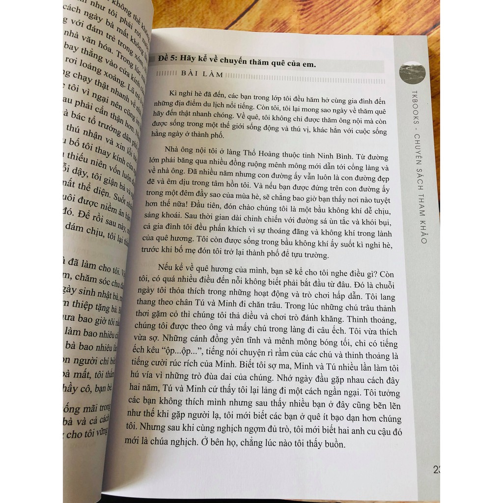 GIỚI THIỆU SÁCH: Những bài văn mẫu lớp 8 – Tập 1 Cuốn sách khơi dậy cảm hứng học tập cho các em học sinh lớp 8, đánh thức tư duy văn học, sự sáng tạo và trí tưởng tượng phong phú bằng những đề bài mới lạ, mở, có sức hút cao. Các em đang là học sinh lớp 8: Đã bao giờ, các em muốn diễn đạt một điều gì đó nhưng không biết phải diễn đạt như thế nào? Các em muốn viết một bài văn hấp dẫn và lay động lòng người nhưng chẳng biết bắt đầu từ đâu? Ngay cả khi tư liệu và dàn ý trên internet rất phong phú, các em vẫn chưa cảm thấy hài lòng với những gì mình viết ra? Và có ai đã từng: Đau khổ với việc làm bài tập và bài kiểm tra? Chờ đợi may mắn và cảm hứng bất chợt? Chờ đợi thầy giỏi cô hay đến với mình? Vậy tại sao các em không tự học bằng nhiều cách, trong đó có cách tự học với những bài văn mẫu? Với mong muốn giúp đỡ cho các em học sinh lớp 8 có được tài liệu tham khảo bám sát với các bài học trên lớp và mở rộng thêm nhiều kiến thức, chúng tôi xin giới thiệu tới các em cuốn sách “Những bài văn mẫu lớp 8”. Cuốn sách văn mẫu này sẽ cung cấp cho các em học sinh lớp 8 những gì? Hướng dẫn tự học với văn mẫu đúng cách, hiệu quả Văn mẫu không phải là một cái phao cứu trợ, không phải là thứ để các em sao chép. Văn mẫu là một công cụ hữu ích cho quá trình tự học nếu các em biết dùng đúng cách. Cuốn sách này sẽ cung cấp phương pháp cụ thể cho từng kiểu bài, giúp các em có thể vận dụng linh hoạt, giải quyết tốt các đề văn khác nhau mà không lúng túng, bỡ ngỡ. Từ phương pháp các em dễ dàng hình thành cách tư duy để giải quyết một vấn đề cụ thể. Rèn kĩ năng viết các kiểu đoạn văn, bài văn tự sự, thuyết minh và nghị luận văn học “Những bài văn mẫu lớp 8” giới thiệu những đoạn, bài văn hay, hoàn chỉnh để các em tham khảo, mở rộng và làm giàu vốn từ, nâng cao khả năng diễn đạt. Từ các bài văn mẫu các em sẽ biết được để có một bài văn hay mình cần thực hiện những bước nào. Qua đó hình thành, phát triển tư duy logic, khả năng ngôn ngữ, lập luận, phản biện vấn đề. Nhờ vậy những kiểu bài tự sự hay thuyết minh, nghị luận văn học sẽ trở nên thật đơn giản với các em. Là cuốn sách đầu tiên hướng dẫn sử dụng văn mẫu có hiệu quả, chia sẻ những tiêu chí để làm được bài văn đúng và hay. Các đề văn thường kèm theo các hình ảnh minh họa thực tế giúp các em dễ dàng liên tưởng, tưởng tượng và sáng tạo câu từ. Phụ huynh và học sinh hãy nhanh tay đặt mua ngay cuốn sách bổ ích này để việc học văn của các em trở nên thú vị hơn nhé! THÔNG TIN CHI TIẾT Công ty phát hành MCBOOKS Tác giả Định Thị Hồng Nhung Nhà xuất bản Nhà Xuất Bản Đại Học Quốc Gia Hà Nội Loại bìa Bìa mềm Số trang 179 Ngày phát hành: 4/2018