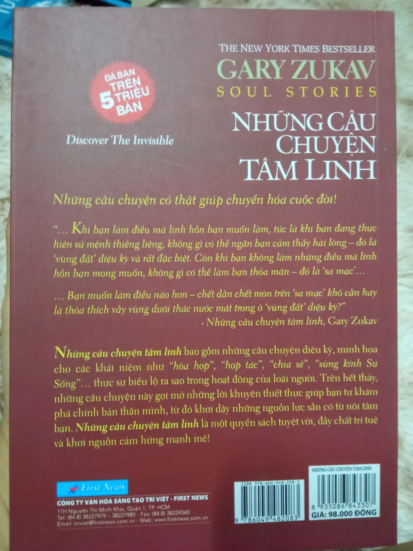 Sách Những Câu Chuyện Tâm Linh, Tác giả: Gary Zukav, Công ty phát hành First News – Trí Việt Ngày xuất bản 10-2017 Kích thước 14.5 x 20.5 cm Loại bìa Bìa mềm Số trang 280 SKU 2430407039149 Nhà xuất bản Nhà Xuất Bản Hồng Đức.