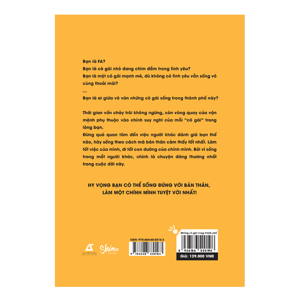 Bạn là FA? Bạn là cô gái nhỏ đang chìm đắm trong tình yêu? Bạn là một cô gái mạnh mẽ, dù không có tình yêu vẫn sống vô cùng thoải mái? … Bạn là ai giữa vô vàn những cô gái sống trong thành phố này? Thời gian vốn chảy trôi không ngừng, còn vòng quay của vận mệnh phụ thuộc vào chính suy nghĩ của mỗi “cô gái” trong lòng bạn. Đừng quá quan tâm đến việc người khác đánh giá bạn thế nào, hãy sống theo cách mà bản thân cảm thấy tốt nhất. Làm tốt việc của mình, đi tốt con đường của chính mình. Bởi vì sống trong mắt người khác, chính là chuyện đáng thương nhất trong cuộc đời này. HY VỌNG BẠN CÓ THỂ SỐNG ĐÚNG VỚI CON NGƯỜI MÌNH, LÀM MỘT CHÍNH MÌNH TUYỆT VỜI NHẤT!