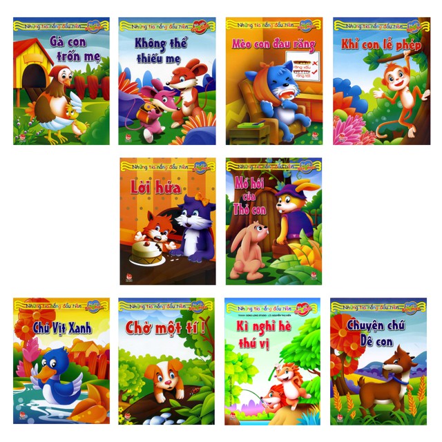 Sách – Những tia nắng đầu tiên – Bộ 10 quyển Những Tia Nắng Đầu Tiên (Trọn Bộ 10 Tập) Bộ sách Những tia nắng đầu tiên gồm những câu chuyện nhẹ nhàng, súc tích, ngộ nghĩnh, đáng yêu… giúp các bé của chúng ta học được nhiều điều hay, lẽ phải, biết kính trọng người trên, yêu quý gia đình, bè bạn. Các bé sẽ trở thành bé ngoan, giống như mặt trời bé con toả ánh nắng lấp lánh và ấm áp trong trái tim cha mẹ, người thân và bạn bè… Trọn bộ gồm 10 tập với các chủ đề: Mèo con đau răng Kì nghỉ hè thú vị Lời hứa Không thể thiếu mẹ Chờ một tí Chú vịt xanh Mồ hôi của thỏ con Chuyện chú dê con Khỉ con lễ phép Gà con trốn mẹ —————— Công ty phát hành Nhà Xuất Bản Kim Đồng Tác giả Nhiều tác giả Ngày xuất bản 09-2015 Kích thước 14 x 18.5 cm Nhà xuất bản Nhà Xuất Bản Kim Đồng Loại bìa Bìa mềm Số trang 100