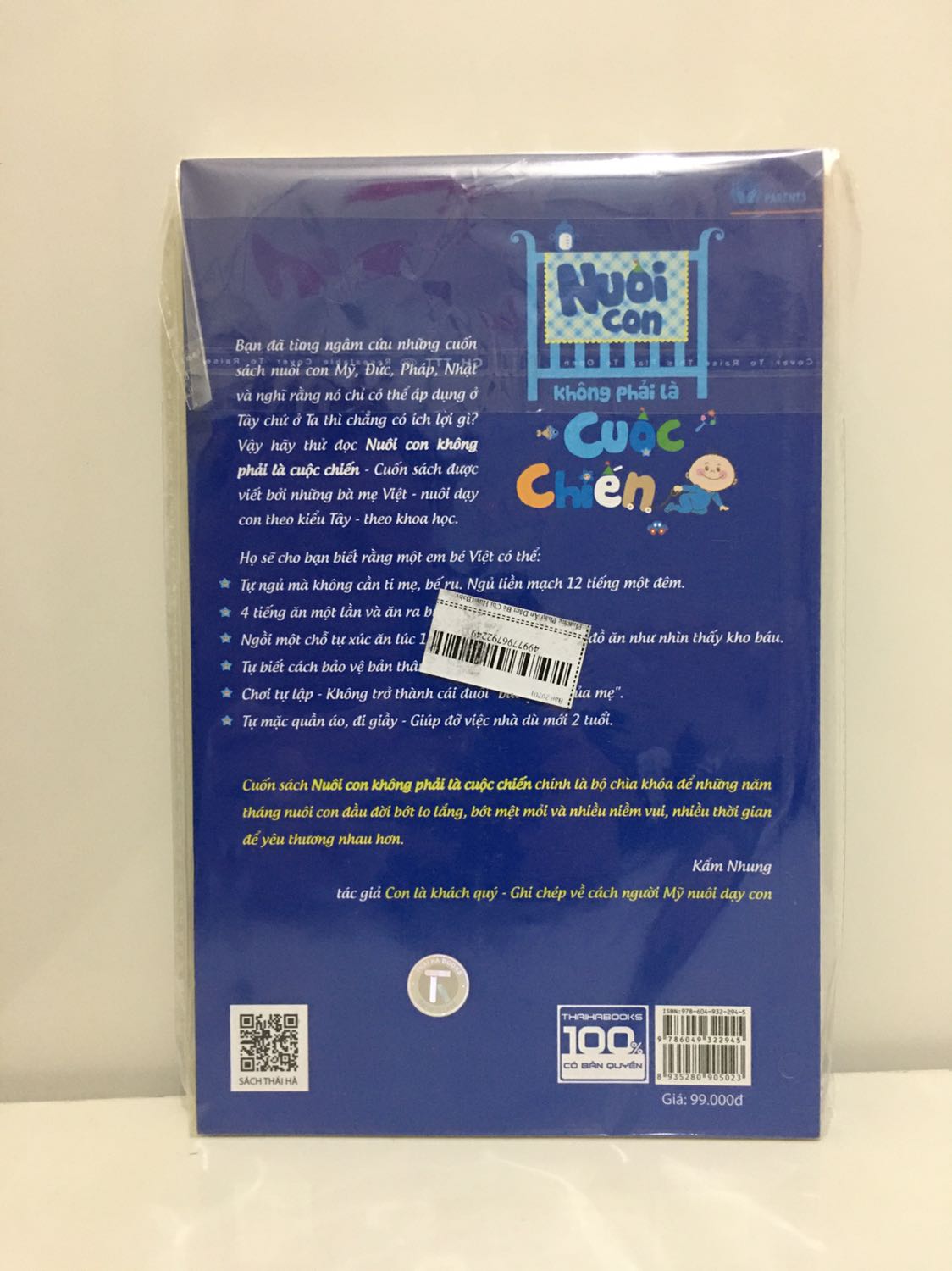 Nuôi Con Không Phải Là Cuộc Chiến (Tái Bản) Bạn đã được làm mẹ, được ôm trên tay sinh linh bé bỏng của mình. Hẳn bạn đang rất băn khoăn và trăn trở với hàng ngàn thắc mắc: làm thế nào để giúp bé làm quen với gia đình, bắt nhịp với cuộc sống mới lạ bên ngoài, làm thế nào để hiểu và đáp ứng đúng những nhu cầu của em bé sơ sinh chỉ mới biết dùng tiếng khóc làm công cụ duy nhất để giao tiếp đây. Những câu hỏi cứ liên tiếp nảy ra, bạn cuống cuồng tìm sự trợ giúp và giải đáp từ nhiều nguồn khác nhau, để rồi dễ dàng rơi vào một vòng xoáy sai lầm và một cuộc chiến mệt mỏi trong sự nghiệp nuôi con nhỏ. Những ngày đầu tiên bạn sẽ cố gắng cho bé bú liên tục, nhằm kích sữa, để con biết đây là mẹ. Đôi khi bạn sẽ đánh thức con dậy để cho con bú khi thấy bé ngủ li bì vì bạn sợ lâu quá con không bú sẽ bị đói. Bạn liên tục tự hỏi: con bú ít thế có đói không? Mình làm như thế có sao không? Con có ngủ được không? Con có nóng không? Con có lạnh không? Và làm thế nào để con tăng cân nhanh nhất có thể. Con tăng cân thế có chậm so với anh, chị, em hay con nhà hàng xóm không? Khi được 4 tháng tuổi, tự nhiên bạn thấy con bú ít hẳn, con cáu gắt, con ngủ không yên, con dậy đêm nhiều lần. Bạn nghĩ là con đói, hốt hoảng cho con bú mỗi giờ. Con quấy khóc, chỉ có ti mẹ hay cái bình mới có thể cho con ngủ được. Và chỉ khi ngủ con mới chịu ăn. Mỗi giấc ngủ của con chỉ kéo dài 30 phút rồi con choàng dậy và kích động như chưa bao giờ được nghỉ ngơi. Đêm con dậy liên tục, con đòi bú, bạn nghĩ con ngày bú ít chắc cần bú bù, cả đêm bạn chẳng ngủ vì phục vụ “tiếp dưỡng” cho con. Mẹ mệt và cảm giác càng ngày con càng “khó tính”.6 tháng con bắt đầu ăn dặm, con cứ nhè chẳng ăn được bao nhiêu. Bạn quyết cho con nằm ngửa ra bón để chờ trọng lực của tự nhiên giúp thức ăn “rơi” vào bụng con. Sữa cũng vậy – cách duy nhất để uống sữa là nằm ngửa đút thìa, hay tệ hơn là uống bằng xi-lanh. Con vẫn quấy khóc đêm, dậy liên tục. Bạn cảm giác những đêm mất ngủ có lẽ sẽ kéo dài đến vô tận. Bìa sách có thể thay đổi theo ngày xuất bản