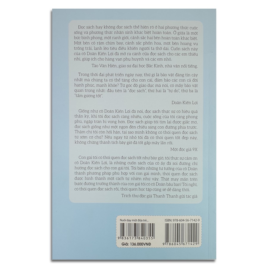 Nuôi Dạy một Đứa Trẻ Thích Đọc Sách “Nuôi Dạy Một Đứa Trẻ Thích Đọc Sách” PDF EPUB PRC AZW miễn phí đọc trên điện thoại – máy tính, ứng dụng đọc file epub, prc reader, azw reader của tác giả Doãn Kiến Lợi là cuốn sách đặc biệt nói về bí quyết làm thế nào để giúp con yêu thích việc đọc sách mà cha mẹ không phải áp đặt, nhắc nhở. Cuốn sách là những trải nghiệm, những quan điểm giáo dục, những suy tư trăn trở của Doãn Kiến Lợi về văn hóa đọc và việc đọc có ảnh hưởng đến sự phát triển của trẻ nhỏ như thế nào. Đây là cuốn sách công cụ dành cho những ông bố, bà mẹ đang băn khoăn làm thế nào đưa trẻ đến với những trang sách, hình thành thói quen thích đọc sách. “Nuôi Dạy Một Đứa Trẻ Thích Đọc Sách” không chỉ trực tiếp trình bày những vấn đề có liên quan tới đọc, học chữ, viết lách mà còn mở rộng đến những tri thức và chủ đề có liên quan tới đọc. Hầu như tất cả những thắc mắc và những điều cần chú ý có liên quan tới việc đọc ở trẻ nhỏ, các bậc phụ huynh đều có thể tìm được đáp án trong cuốn sách của Doãn Kiến Lợi. Hi vọng cuốn sách “Nuôi Dạy Một Đứa Trẻ Thích Đọc Sách” sẽ có ích cho các bậc phụ huynh, có lợi cho các con. —– Công ty phát hành Công Ty Cổ Phần Văn Hóa Pingbooks Tác giả Doãn Kiến Lợi Nhà xuất bản Nhà Xuất Bản Phụ Nữ Ngày xuất bản 12-2019 Kích thước 14.5 x 20.5 Loại bìa Bìa mềm Số trang 401