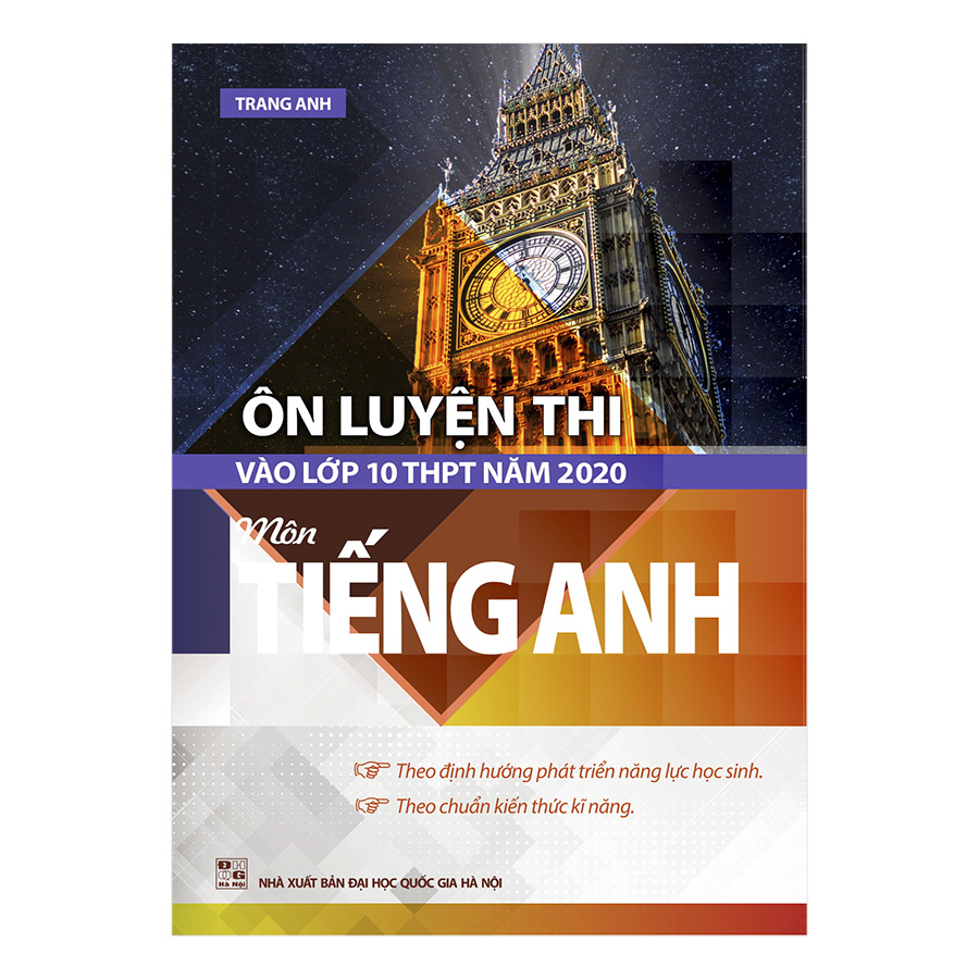 Sách Ôn Luyện Thi Vào Lớp 10 THPT Năm 2020 Môn Tiếng Anh, Tác giả: Trang Anh, Công ty phát hành Công ty Cổ phần sách và Công nghệ giáo dục Việt Nam – Eduking Ngày xuất bản 12-2019 Kích thước 16 x 24 Loại bìa Bìa mềm Số trang 212 SKU 2764824532472 Nhà xuất bản Nhà Xuất Bản Đại Học Quốc Gia Hà Nội.