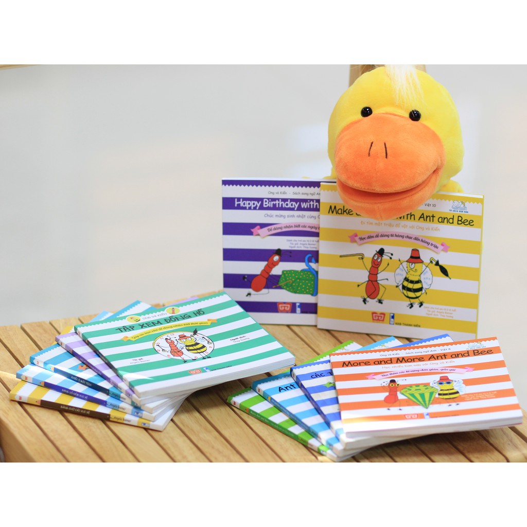 ✔️Mình rất mê bộ này vì cảm thấy nó cực kỳ phù hợp với mấy bạn nhỏ đang ở độ tuổi tập đọc. Ong và Kiến tình cờ gặp nhau và trở thành một đôi bạn thân thiết, gắn bó. Thông qua những câu chuyện hết sức thú vị và gần gũi của hai bạn nhỏ này, các em bé sẽ tiếp thu được những kiến thức và những bài học rất chân thực và bổ ích! Nội dung đơn giản, từ ngữ dễ hiểu từ chuyến đi siêu thị vui vẻ, cuộc thám hiểm vòng quanh thế giới để tìm kiếm… chiếc ô….Nơi bí mật khiến Kiến vẽ được những đường thẳng tắp, cách hai bạn tự tạo ra cầu vồng… ✔️Một điểm nhấn khiến các bạn bé mê tít chính là hình ảnh bạn Kiến với dáng hình cao gầy mang chiếc mũ nồi đen kèm chiếc gậy nhỏ xíu cùng bạn Ong với chiếc mũ đỏ và chiếc ô bé nhất thế giới hút được “cảm tình” của mấy bạn bé ngay từ “cái nhìn đầu tiên”. ✔️Tiện nhất là những cuốn sách với kích thước “bỏ túi” có thể theo các bé lê la khắp nơi khắp chốn, đến đâu cũng có thể giở ra và tập đọc. Bộ sách đã từng được coi là là series truyện kể kinh điển dành cho trẻ nhỏ chuẩn bị và đang trong độ tuổi học đọc, học viết. ✔️Và bộ sách không phải của một nhà văn chuyên nghiệp mà được viết bởi một bà mẹ yêu con. Tác giả viết series Ong và Kiến đơn giản vì bà muốn có một bộ sách để dạy cậu con trai tập đọc một cách dễ dàng chính vì thế cuốn sách có vô vàn những nội dung tương tác giữa bố mẹ và con mà bạn không dễ tìm thấy ở một cuốn sách tập đọc thông thường khác. Trong bộ sách này xuất hiện những “chữ nổi bật” màu đen và màu đỏ. Khi cha mẹ đọc chữ màu đen, các em bé có thể tham gia vào câu chuyện bằng cách đọc lên những chữ màu đỏ, qua đó vừa có thể giúp câu chuyện trở nên hấp dẫn, lại vừa giúp các bạn nhỏ dễ dàng ghi nhớ bài học hơn. Các cuốn sách còn bổ sung các từ vựng tiếng Anh đơn giản, giúp các em làm quen và đến với tiếng Anh một cách tự nhiên nhất. ✔️Không nói nhiều nữa sợ bố mẹ háo hức quá…cùng con khám phá series Ong và Kiến – bộ truyện kinh điển để dạy bé tập đọc nào…………… ✔️Combo 15 cuốn: Chiếc ô mất tích, Bảng số đếm vui vẻ, Nào mình cùng đi mua sắm, Tập xem đồng hồ, Các từ Tiếng Anh nào có 3 chữ cái, Bảng chữ cái vui vẻ, Trái và phải cùng Ong Kiến, Ong và Kiến với một bí mật, Ong và Kiến với bác sĩ…. Tác giả: Angela Banner NXB Thanh Niên Độ tuổi: 3-10 Kích thước: 14 x 13 cm Năm xuất bản: 2018 Cảm ơn bạn đã ghé qua tiệm sách Minh Vân. Chúc một ngày tốt lành!