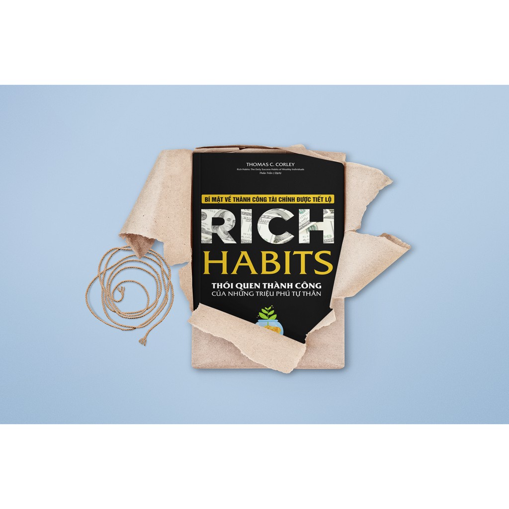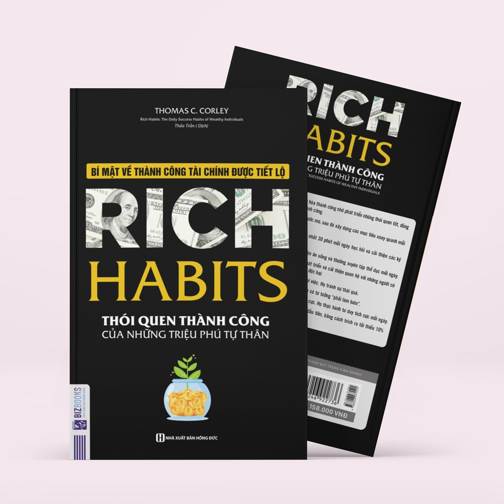 – Giới thiệu sách: Thói quen thành công của những triệu phú tự thân – Rich Habits – Cuốn sách giúp cuộc đời bạn đi đến thành công “Mọi điều bạn làm hàng ngày đều quan trọng. Thói quen hàng ngày sẽ giúp bạn thành công hay không thành công trong cuộc đời” – Nhận định trên được Thomas C. Corley, người đã dành ra 5 năm nghiên cứu thói quen hàng ngày của 177 triệu phú tự thân, đưa ra. Ông cũng là tác giả cuốn sách bán chạy “Rich Habits: The Daily Success Habits of Wealthy Individuals” (Tạm dịch: Thói quen Giàu có: Những thói quen hằng ngày làm nên thành công của người giàu). Cuốn sách là điều thú vị khi tác giả đã dày công nghiên cứu trong 5 năm về những thói quen hàng ngày của 233 triệu phú và 177 triệu phú tự thân để bật mí bí mật triệu phú của họ Cuốn sách sẽ giúp bạn: Cách hoàn thành 100% mục tiêu của bạn Cách thiết lập ước mơ: Có 3 bước trong quy trình thiết lập ước mơ Cách tìm thất mục tiêu của cuộc đời bạn: Tìm ra mục tiêu cuộc đời là việc cần thiết để thành công. Cách nuôi dạy trẻ thành công, giàu có và hạnh phúc:Cách tìm đúng người có thể giúp bạn xác định được ước mơ và mục tiêu của mình Cách nhảy tắt đến sự thay đổi thói quen. Những bài học mà chúng ta học được từ cuốn sách không chỉ giúp chúng ta phát triển và trưởng thành hơn, mà nó còn có ích cho con cái chúng ta, các thế hệ tương lai sẽ thấy biết ơn vì đã học những thói quen thành công đó. – Tác giả: Thomas C. Corley – Số trang: 288 – Năm xuất bản: 2019