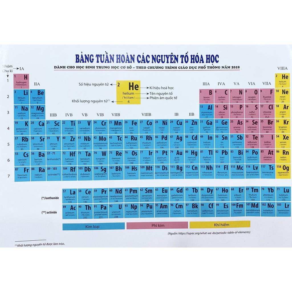 Danh Mục Sách Giáo Dục Thương hiệu Nhiều tác giả Nhập khẩu/ trong nước Trong nước Ngôn ngữ Tiếng Việt Kho hàng 406 Gửi từ Bình Dương Tác giả: Nhiều tác giả Nhà xuất bản: NXB Giáo Dục Việt Nam Số tờ: 1 tờ (2 mặt) Năm xuất bản: 2022 Kích thước: 21×30 cm Công ty phát hành: NXB Giáo Dục Việt Nam Bảng tuần hoàn các nguyên tố Hóa Học này dành cho học sinh THCS theo Chương trình Giáo dục phổ thông năm 2018 (Theo công bố mới nhất của IUPAC). Tài liệu được Bộ GD&ĐT duyệt cho phép mang vào phòng thi. Mẫu bảng tuần hoàn các nguyên tố hóa học đầy đủ nhất là một trong những công cụ hỗ trợ trong việc học của học sinh và việc giảng dạy của giáo viên, nền tảng để học Hóa học tốt nhất, bảng tuần hoàn thành sẽ xuất hiện trong hóa học lớp 8.