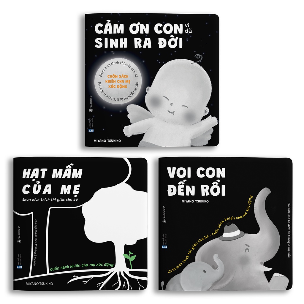 Công ty phát hành: Wabooks Nhà xuất bản: NXB Thanh Niên Tác giả: Miyano Tsukiko Ngôn ngữ: Tiếng Việt Loại bìa: Bìa mềm Số trang: 28 trang Năm xuất bản: 2022 Phù hợp cho trẻ 0-18 tháng tuổi Giấy C150 dai, dày, khó rách Sách bo tròn 4 góc an toàn cho bé Hướng dẫn bố mẹ phương pháp đọc Ehon được in ở đầu mỗi cuốn sách. Mô tả sách: CẢM ƠN CON VÌ ĐÃ ĐẾN VỚI BA MẸ Ba mẹ có biết, trẻ có khả năng nhìn tốt ngay từ khi mới sinh, nhưng não bộ của trẻ (vùng Thùy Chẩm) chưa sẵn sàng để xử lý những thông tin thị giác đó. Nên thế giới qua đôi mắt trẻ sơ sinh sẽ khá mờ nhạt. Tới 6 – 8 tháng tuổi, thị giác của trẻ có thể đạt 85 – 90% như người trưởng thành và tiếp tục phát triển khi trẻ dần lớn lên. Vì vậy, ba mẹ cần có kiến thức về các biện pháp phát triển thị giác cho con, mà Ehon kích thích thi giác là một ví dụ điển hình. Bộ Ehon “Cảm ơn con” bao gồm 3 cuốn: “Cảm ơn con vì đã sinh ra đời”, “Hạt mầm của mẹ” và “Voi con đến rồi”: “Cảm ơn con vì đã sinh ra đời” là câu chuyện về em bé Thiên thần nghe lời Thượng đế đi tìm mẹ. Thiên thần đã đi khắp nơi, gặp ai cũng hỏi “Cậu có biết mẹ tớ không?”, nhưng chẳng ai biết. Từ bạn Chim Cánh Cụt, đến bạn Vịt, bạn Heo đều có mẹ, chỉ có em bé Thiên thần chưa tìm thấy mẹ. Em bé cũng mong được gặp mẹ, nghe mẹ nói “Cảm ơn con vì đã sinh ra đời”. “Hạt mầm của mẹ” là câu chuyện về cây mẹ và hạt mầm bé nhỏ. Hạt mầm lớn lên từng ngày, trải qua gió sương, mưa rào, … Từ hạt mầm trở thành chồi xanh, rồi vươn cao thành cây. Chẳng mấy chốc, hạt mầm ngày nào đã cao lớn. Cây mẹ hạnh phúc được chứng kiến hành trình lớn lên của hạt mầm do mình sinh ra. “Voi con đến rồi” là câu chuyện cảm động về niềm hạnh phúc của Voi bố khi biết tin mình đã có con. Voi bố đã đi báo cho cả khu rừng về đứa con mới ra đời của mình. Gặp bất cứ ai, Voi bố cũng thốt lên “Tôi được làm bố rồi”. Như bao người cha khác, Voi bố cũng muốn cho cả Thế giới biết mình hạnh phúc đến nhường nào khi được đón đứa con chào đời.