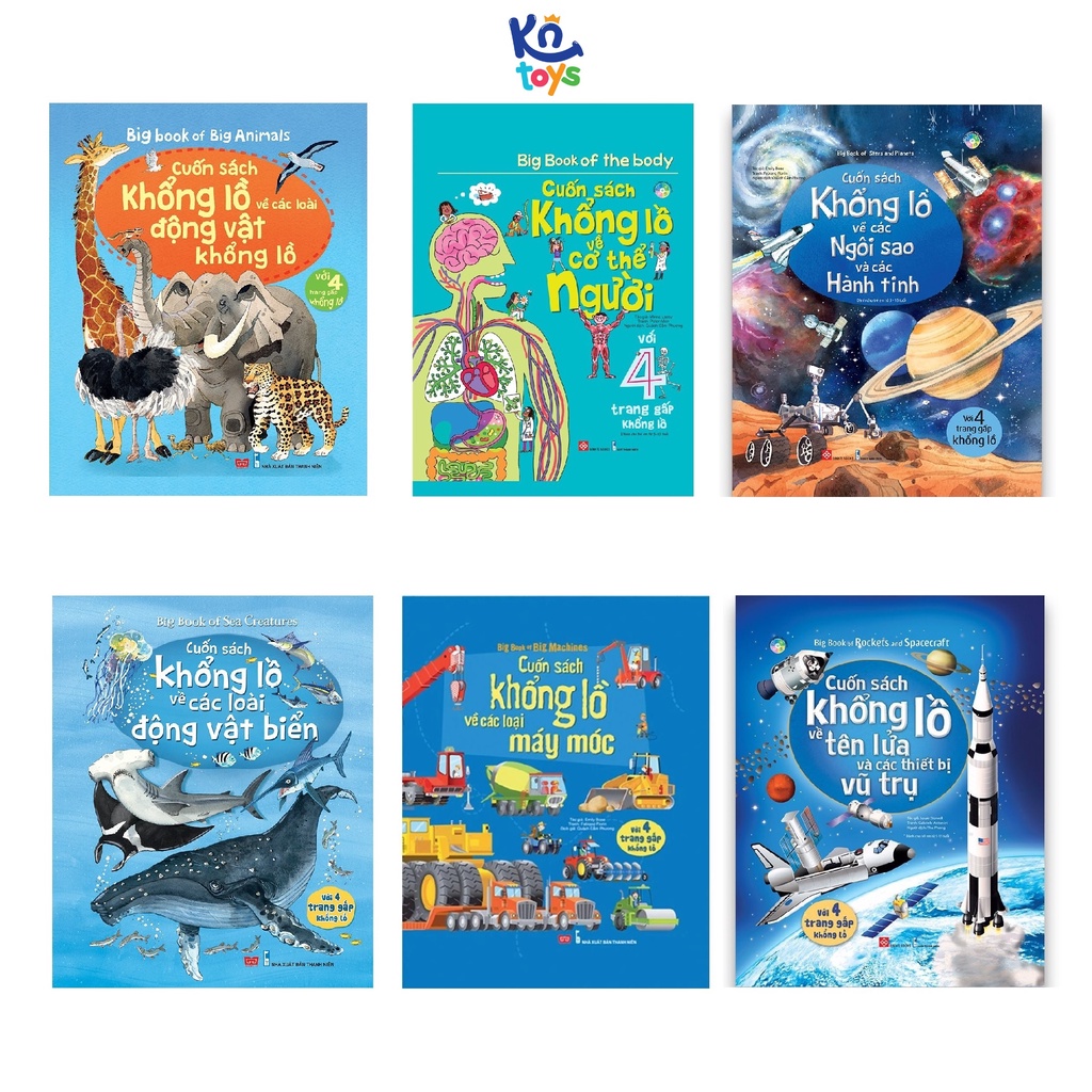 Sách Tương Tác – Big Book – Cuốn Sách Khổng Lồ – Đinh Tị THÔNG TIN VỀ SẢN PHẨM: · Tác giả: Nhiều tác giả · NXB Thanh Niên / NXB Hà Nội · Nhà phát hành : Đinh Tị · Độ tuổi: 5 – 15 tuổi · Kích thước: 24.5 x 29.5cm · Số trang: 32 trang · Năm xuất bản: 2022 Gồm nhiều chủ đề khác nhau cho bé tha hồ lựa chọn và khám phá về thế giới xung quanh như: – Cuốn sách khổng lồ về các loài động vật khổng lồ – Cuốn sách khổng lồ về các loài khủng long – Cuốn sách khổng lồ về cơ thể người – Cuốn sách khổng lồ về các loài động vật biển – Cuốn sách khổng lồ về các ngôi sao và các hành tinh – Cuốn sách khổng lồ về các màu sắc – Cuốn sách khổng lồ về những con bọ – Cuốn sách khổng lồ về các loại tàu thuyền – Cuốn sách khổng lồ về những chiếc máy kéo – Cuốn sách khổng lồ về t ên lửa và các thiết bị vũ trụ – Cuốn sách khổng lồ về những chiếc xe tải – Cuốn sách khổng lồ về các loại máy móc – Cuốn sách khổng lồ về bảng chữ cái tiếng Anh – Cuốn sách khổng lồ về các con số – Cuốn sách khổng lồ về tàu hỏa – Cuốn sách khổng lồ về các số đếm LỢI ÍCH CỦA BỘ SÁCH: Bộ sách có kích thước lớn với 4 trang gấp khổng lồ cho các bạn từ 5 – 15 tuổi với nhiều chủ đều, giúp các bạn nhỏ học hỏi và tìm hiểu về thế giới xung quanh bằng hình ảnh như các động vật khổng lồ, các loài khủng long, về cơ thể người, các loài động vật biển, màu sắc, các ngôi sao hành tinh, cũng như rất rất nhiều các chủ đề khác. Đặc biệt, mỗi cuốn sách với 4 trang gấp khổng lồ mang đến cho các bé rất nhiều điều thú vị về thế giới, giúp bé dễ dàng hình dung được những kiến thức bổ ích mà những trang sách mang lại.