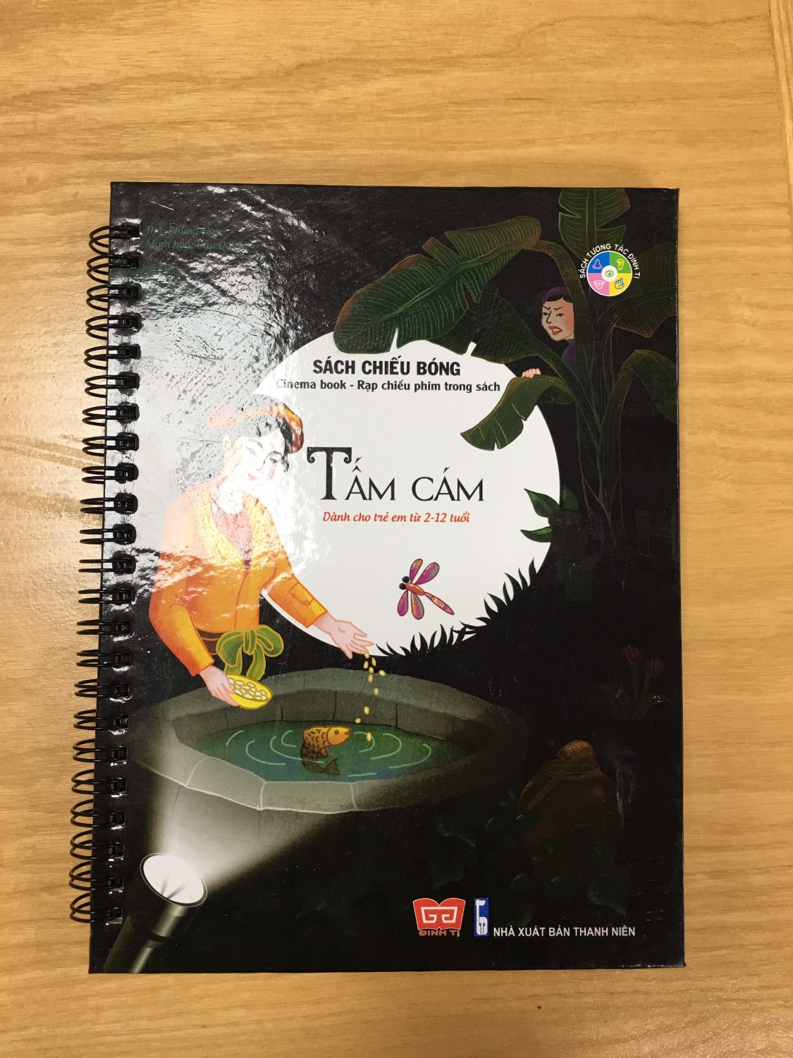 CHÍNH THỨC PHÁT HÀNH: SÁCH CHIẾU BÓNG ĐẦU TIÊN CỦA NGƯỜI VIỆT NAM VIẾT CHO TRẺ EM VIỆT NAM – CINEMA BOOK – TẤM CÁM Báo Sài Gòn giải phóng mới đưa tin về một thực trạng “nhập siêu” báo động của văn học Việt Nam. Rằng chúng ta đang thua ngay trên sân nhà, khi số lượng tác phẩm văn học Việt được dịch ra nước ngoài so với số tác phẩm nước ngoài dịch và phát hành tại Việt Nam chỉ như muối bỏ biển. Lĩnh vực sách văn học là vậy, lĩnh vực sách thiếu nhi lại càng vậy. Chúng ta có sẵn những quyển sách thiếu nhi best-seller trên Amazon được chuyển ngữ sang tiếng Việt, nhưng không có sẵn nhiều cuốn sách của tác giả Việt Nam viết cho trẻ em Việt Nam. Đó là trăn trở của Đinh Tị Books – của những người làm sách khi luôn muốn kể lại cho trẻ em mình những truyền thống đẹp, những bông hoa, ngọn cỏ đặc trưng của dải đất chữ S mà không nơi nào trên địa cầu có được. Để dạy trẻ về màu đỏ người Mỹ sẽ nhắc đến quả “cherry”, nhưng chúng tôi lại cứ muốn đưa thêm vào sách những “bông hoa phượng vĩ”. Cùng với tâm thế như vậy, bộ sách Mặt nạ của Đinh Tị, sách Lật mở khám phá, sách 30 ngày cùng con học hiểu về chống xâm hại, sách Chuyển động đếm số, và nay là bộ SÁCH CHIẾU BÓNG – CINEMA BOOK đã ra đời. Sách chiếu bóng – Cinema book, song ngữ Việt – Anh, có chất liệu sáng tác từ dân gian Việt Nam, với kết cấu cải tiến giúp giải phóng đôi bàn tay để đem lại cho độc giả một trải nghiệm đọc tiện lợi nhất, được lấy cảm hứng từ chính “màn đêm” vẫn luôn ẩn chứa nhiều điều sợ hãi với con trẻ. Bóng tối là 2 chữ ám ảnh tuổi thơ và giấc ngủ của nhiều em bé. “Mẹ ơi, đừng tắt đèn con sợ; mẹ ơi con mơ thấy quái vật ghê lắm; mẹ ơi, đừng bỏ con lại một mình trong phò là câu nói chắc hẳn bố mẹ nào cũng quen tai. Thay vì phớt lờ, thay vì cho rằng đó là một nỗi sợ vẩn vơ khi con lớn rồi sẽ hết, chúng ta hãy tranh thủ cơ hội biến nỗi sợ màn đêm thành sự háo hức mỗi tối. Biến bức tường vốn chỉ có màu đen trở thành một màn chiếu phim sống động. Tất cả chỉ với một cuốn sách Chiếu bóng – Cinema book – Tấm Cám, giá 126k. Từ câu chuyện cổ tích tự sự quá đỗi quen thuộc với các bạn nhỏ, Tấm Cám đã được “làm mới” dưới hình chuyện thơ dễ thuộc dễ nhớ, với hình ảnh chiếu bóng phản chiếu đầy sáng tạo, hấp dẫn. Những câu thơ và hình ảnh dễ dàng đi vào trí óc của bé yêu, và “ngầm dạy” cho trẻ những bài học vô bổ ích mà không bị khuôn mẫu, giáo điều. Xưa ở làng quê xa Tấm sớm mất mẹ cha Sống với người mẹ kế Và Cám – con bà ta. Một hôm Tấm và Cám Đi xúc tép ngoài đồng Tấm chăm chỉ lao động Cám thì toàn chơi không. Trời chiều xuống ráng hồng Cám lừa Tấm tắm sông Trút giỏ hòng cướp công Còn sót con cá bống.