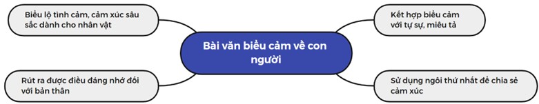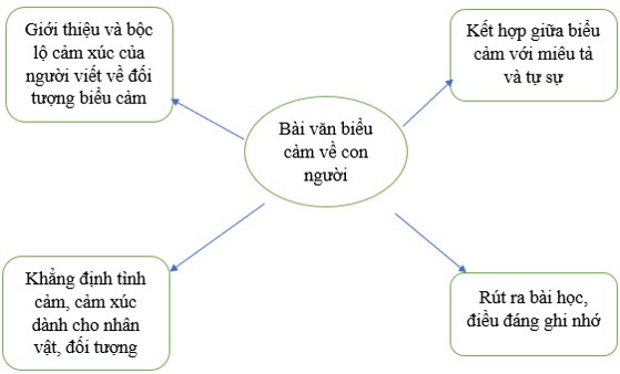 Hoàn chỉnh sơ đồ sau về đặc điểm của bài văn biểu cảm (về con người).
