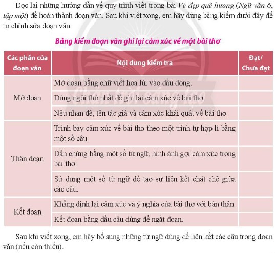 VIẾT ĐOẠN VĂN GHI LẠI CẢM XÚC VỀ MỘT BÀI THƠ