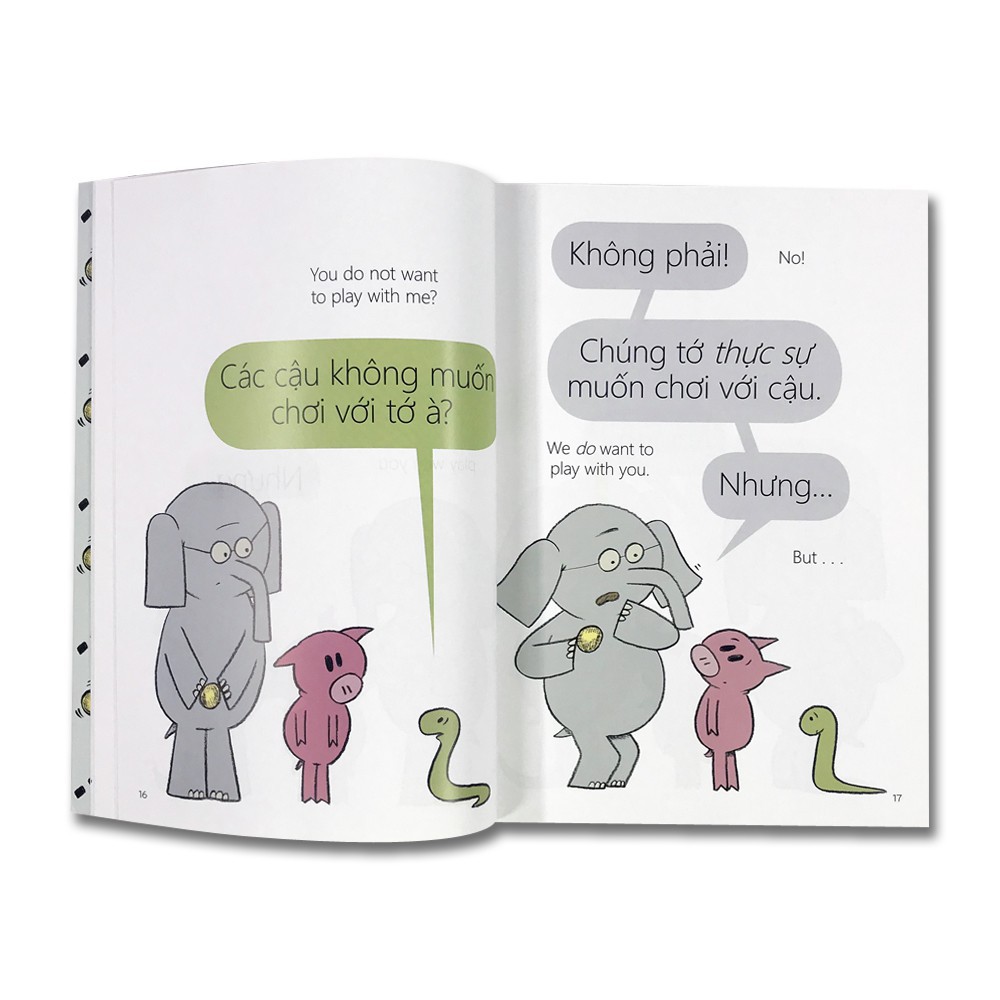 Tác giả: Mo Willems Dịch giả: Mầm nhỏ Số trang: 64 trang Khổ sách: 16,5 x 23 cm NXB: NXB Mỹ thuật Giá bìa: 49.000 Ngày phát hành: 9/2019 GIỚI THIỆU SÁCH Bộ sách tranh song ngữ “Voi và Lợn” PDF EPUB PRC AZW miễn phí đọc trên điện thoại – máy tính, ứng dụng đọc file epub, prc reader, azw reader của tác giả Mo Willems gồm 16 tập, kể những câu chuyện hàng ngày của Voi Gerald và Lợn Piggie mà bất cứ bạn nhỏ nào cũng có thể gặp phải với bạn bè của mình. Mỗi tập sách đều khiến con trẻ thích thú với những tình huống hài hước, đáng yêu của những người bạn không có điểm chung nào về bề ngoài nhưng lại mang đến cho nhau nhiều niềm vui, luôn bên nhau, cùng chia sẻ. Voi và Lợn không chỉ phản chiếu một cách đầy đủ, thú vị, bất ngờ về thế giới tâm hồn trẻ thơ qua những tình huống hài hước, bộ sách còn giúp trẻ rèn luyện khả năng ngôn ngữ khi mỗi tập sách chỉ chứa không quá 50 từ khác nhau phù hợp với độc giả nhỏ tuổi. Với phiên bản song ngữ, trẻ có thể học được cả tiếng Anh và tiếng Việt. Bộ sách còn nhấn mạnh yếu tố cảm xúc, mỗi tình huống là một cơ hội để các nhân vật thể hiện những cảm xúc khác nhau: tức giận, sợ hãi, thất vọng, vui vẻ… Ngoài ra, bộ sách còn được các giáo viên trên khắp thế giới yêu thích và có thể thiết kế các bài học, trò chơi sinh động từ câu chuyện giữa Voi và Lợn.