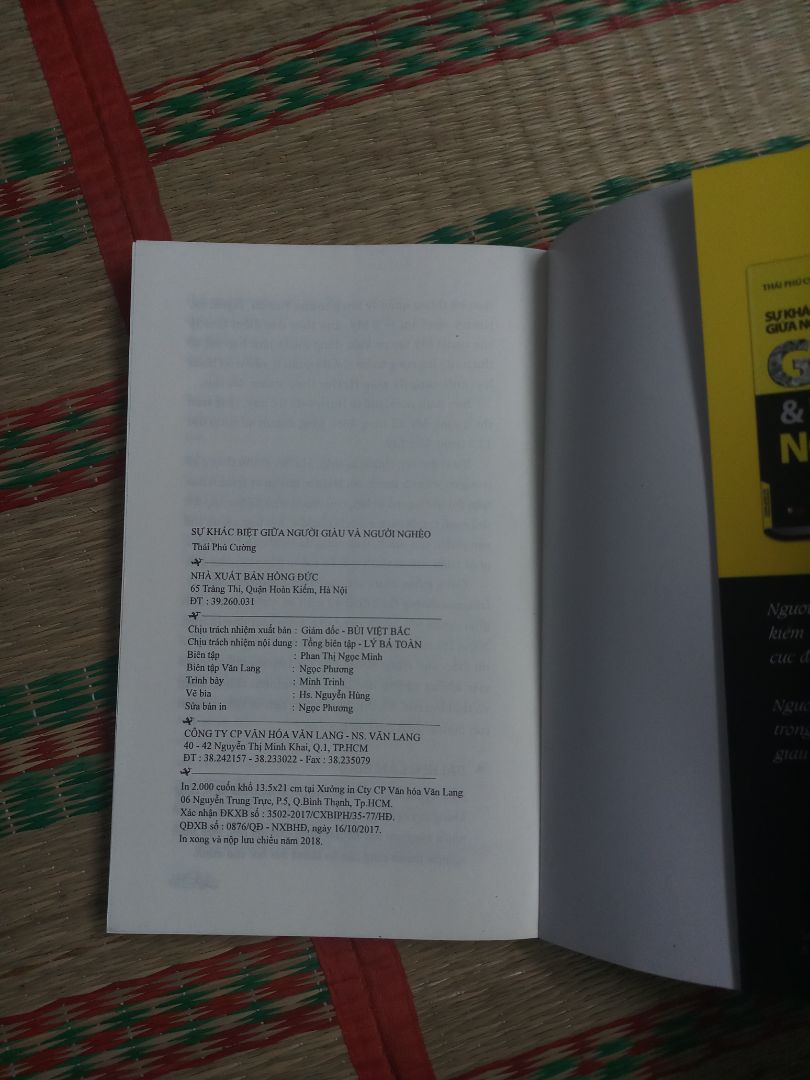 Sách Sự Khác Biệt Giữa Người Giàu & Người Nghèo 2019, Tác giả: Thái Phú Cường, Công ty phát hành Văn Lang Ngày xuất bản 01-2019 Kích thước 13.5 x 21 cm Dịch Giả Lê Tiến Thành Loại bìa Bìa mềm Số trang 200 SKU 7412718785095 Nhà xuất bản Nhà Xuất Bản Hồng Đức.