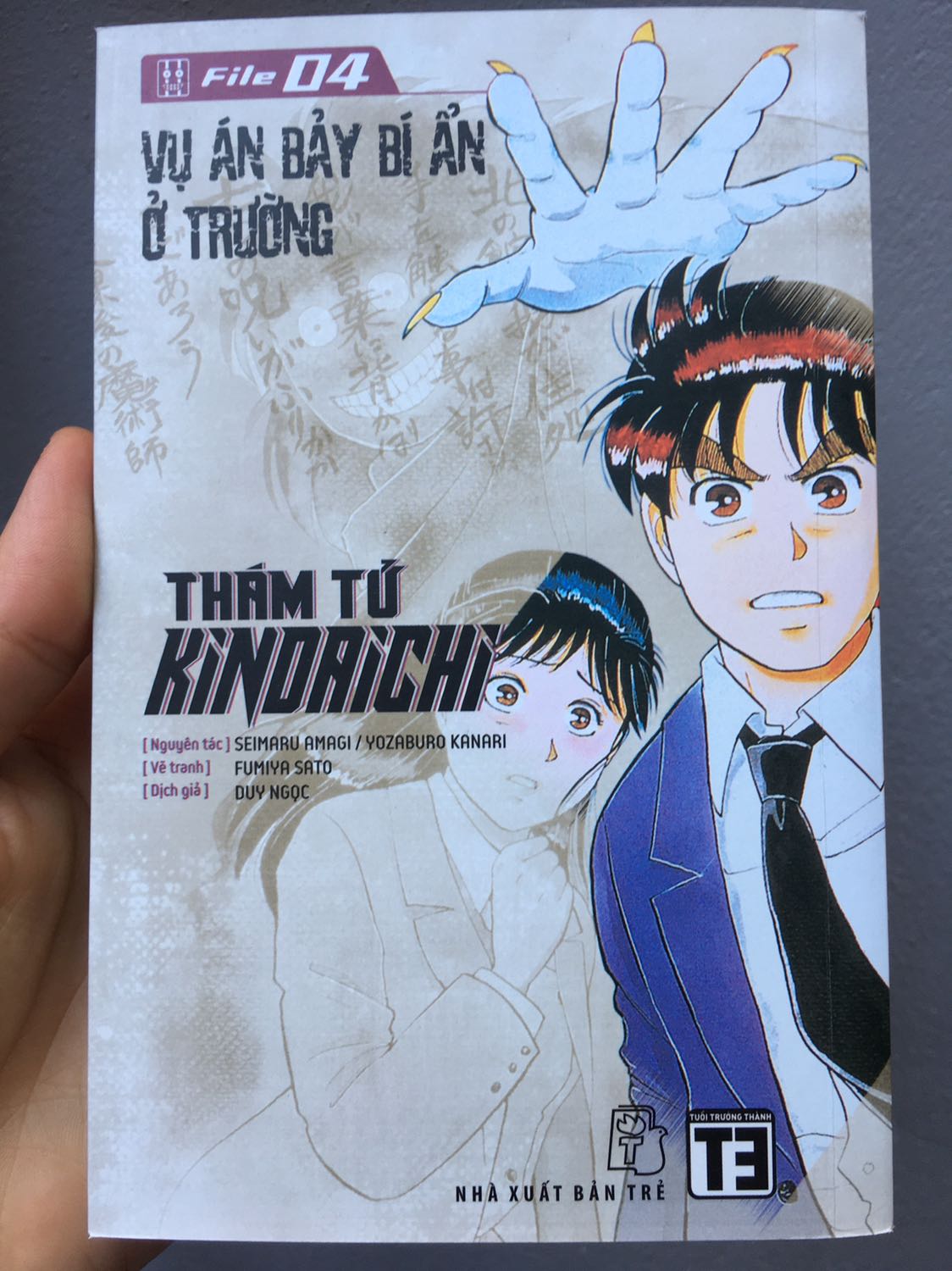 Thám Tử Kindaichi (Tập 4) – Vụ Án Bảy Bí Ẩn Ở Trường Kindaichi Hajime (tên thường gọi là Kindaichi) là một cậu học sinh trung học ở trường LiTong nổi tiếng quậy quá, nghịch ngợm, chuyên đi học trễ nhưng luôn là học sinh đứng đầu lớp. Thực chất Kindaichi là một người có cá tính mạnh mẽ, rất thông minh (có chỉ số IQ là 180) cùng với những suy luận sắc bén vì cậu ta là người có một dòng máu “thiên tài” từ ông nội của mình là một nhà thám tử nổi tiếng đại tài Hajime. Kindaichi có một cô bạn gái thân với nhau từ nhỏ là Nanase Miyuki, một cô gái dễ thương có tính tình đáng yêu và được rất nhiều cậu con trai đào hoa phong nhả để ý nhưng cô chỉ luôn đi theo Kindaichi dù cậu ta là một người quậy phá, vô tích sự. Kindaichi cùng với cô bạn thân Miyuki luôn phiêu lưu vào những vụ án ghê rợn, đẫm máu và đầy bí ẩn thử thách của những kẻ giết người tàn ác. Hai viên cảnh sát thường có mặt trong truyện luôn được Kindaichi hỗ trợ phá án qua những vụ án mạng là Kenmochi Isamu và Akechi Kengo. Những tập truyện Kindaichi lôi cuốn người đọc với những vụ giết người huyền bí và những màn phá án tuyệt vời của một cậu học sinh trung học. Những vụ án trong truyện thường là những vụ giết người trong phòng kín hay trên đảo hoang với những manh mối đặc sắc kèm theo những lời bí ẩn để lại tại hiện trường và hung thủ là những người quen thuộc đồng hành từ đầu tập. Điều đáng chú ý ở Thám tử Kindaichi là kẻ giết người không bị tâm thần và những vụ giết người không vì lợi ích cá nhân. Những hung thủ bị vạch trần thường là do tổn thương nặng về tâm lí hoặc tình cảm vì nạn nhân gây ra cho mình trong quá khứ và có khi bắt nguồn từ lòng hận thù, ghen ghét đố kị, tham lam mù quáng, thói chuộng hư danh, ham muốn tiền tài vật chất… Nói chung tính chất tội phạm là do bắt nguồn từ ý muốn tham vọng cá nhân, thỏa mạn dục vọng thấp hèn của con người. Ngoài những vụ án li kì hấp dẫn hồi hộp qua những pha phá án sắc sảo, những tập truyện Thám tử Kindaichi còn giáo dục cho thanh niên sống ngày nay phải bằng chính năng lực của mình, sống đúng với pháp luật, tội ác luôn bị trừng trị và cộng lí công bằng trong xã hội. Tập 4 Sau lễ hội thành lập trường, một bức thư đe dọa được gửi đến trường Fudo từ một kẻ xưng là “Phù thủy sau giờ học”. Điều này đã khiến lời đồn thổi về 7 bí ẩn ở trường quan đến khu lớp học cũ nổi lên. Kindaichi được Sakuragi Ruiko, hội trưởng của câu lạc bộ nghiên cứu bí ẩn mời điều tra về 7 bí ẩn này và cả “Phù thủy sau giờ học”. Một đêm nọ, Sakuragi gọi điện cho Kindaichi và mọi người đến trường, và ở đó họ đã thấy một bóng đen bí ẩn ở phòng sinh học bị bỏ trống.